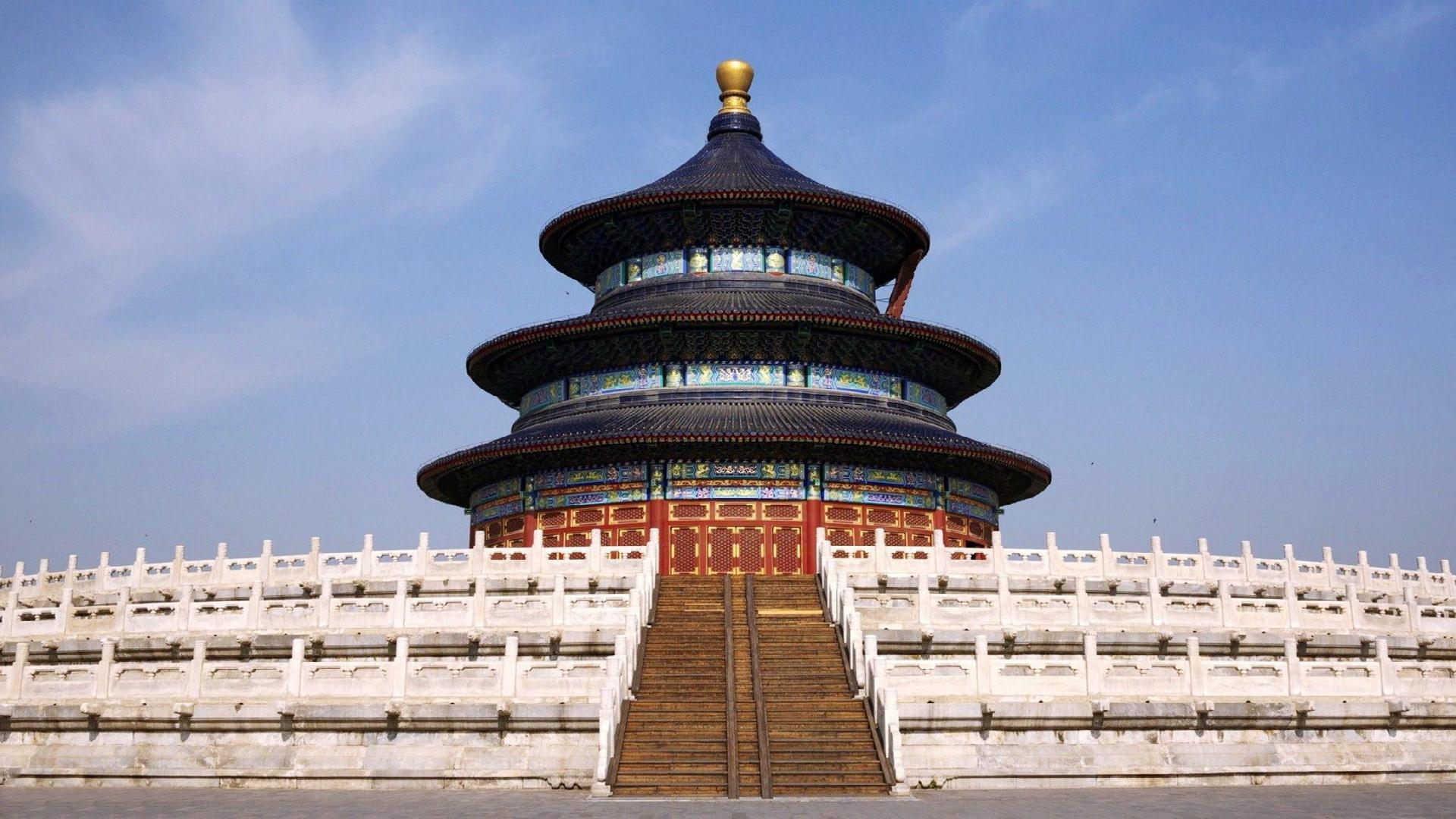 Description: A tall building with a tower on top of it's sides and a sky background behind it with clouds.