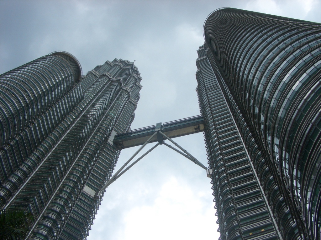 Description: Two tall buildings with a sky background and a few clouds in the sky above them.