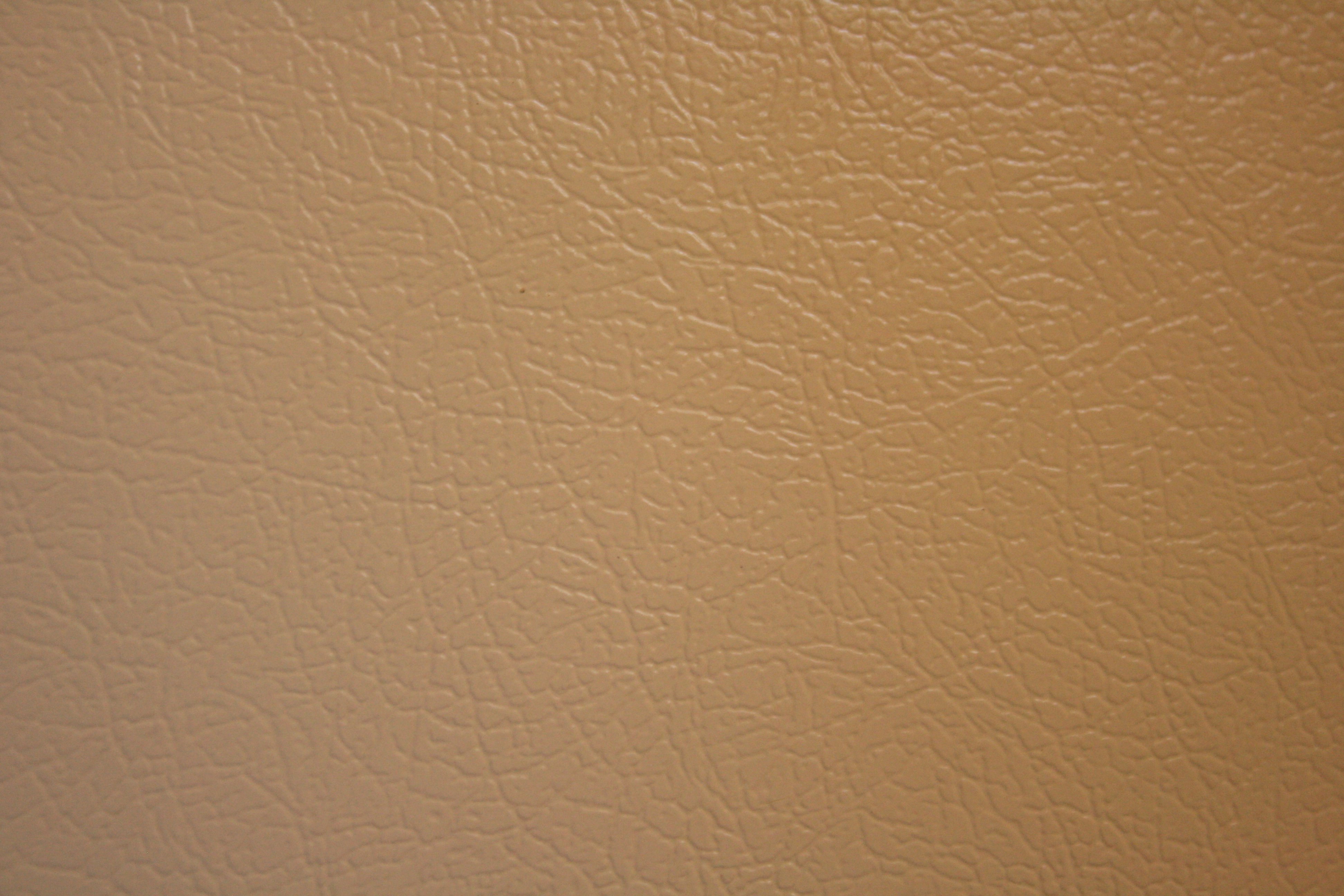 Description: A close up of a tan leather textured surface with a black and white cat on it's back.
