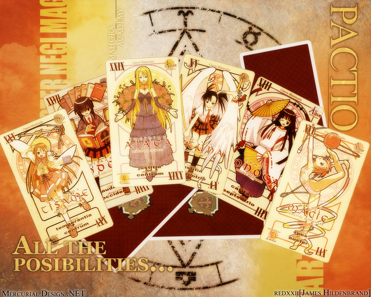 Description: A set of five tarot cards with a clock in the background and a drawing of a woman holding a sword.