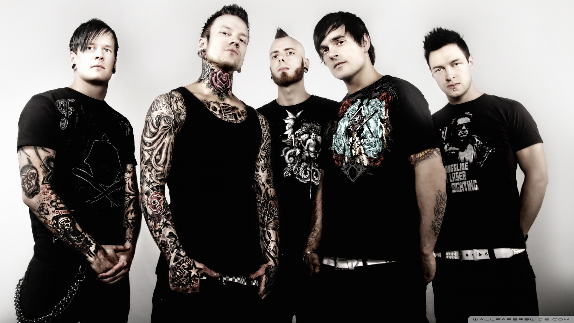 Description: A group of men with tattoos standing next to each other in front of a white wall with a white background.