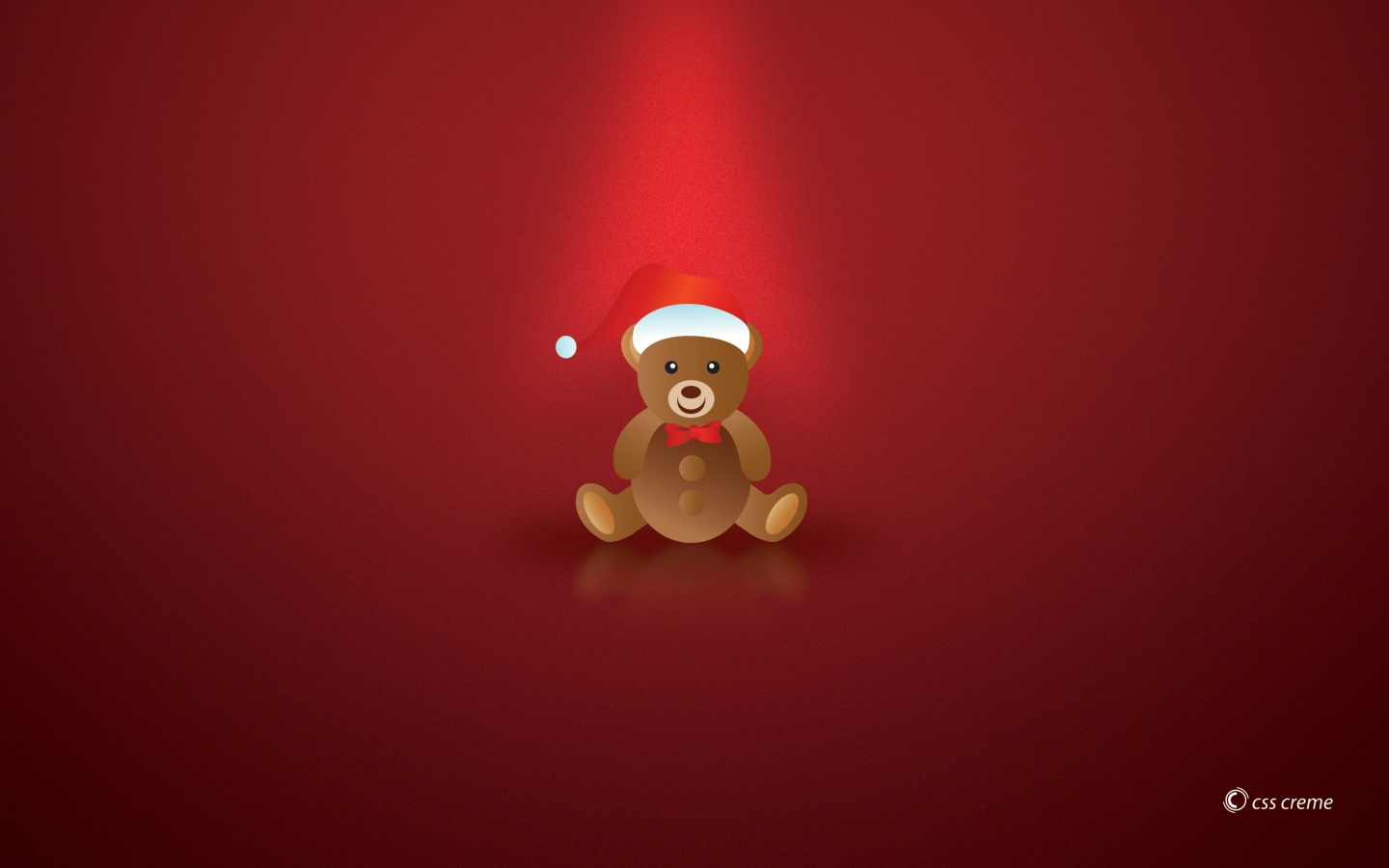 Description: A teddy bear with a santa hat sitting on a red background with a spotlight coming in from the side.