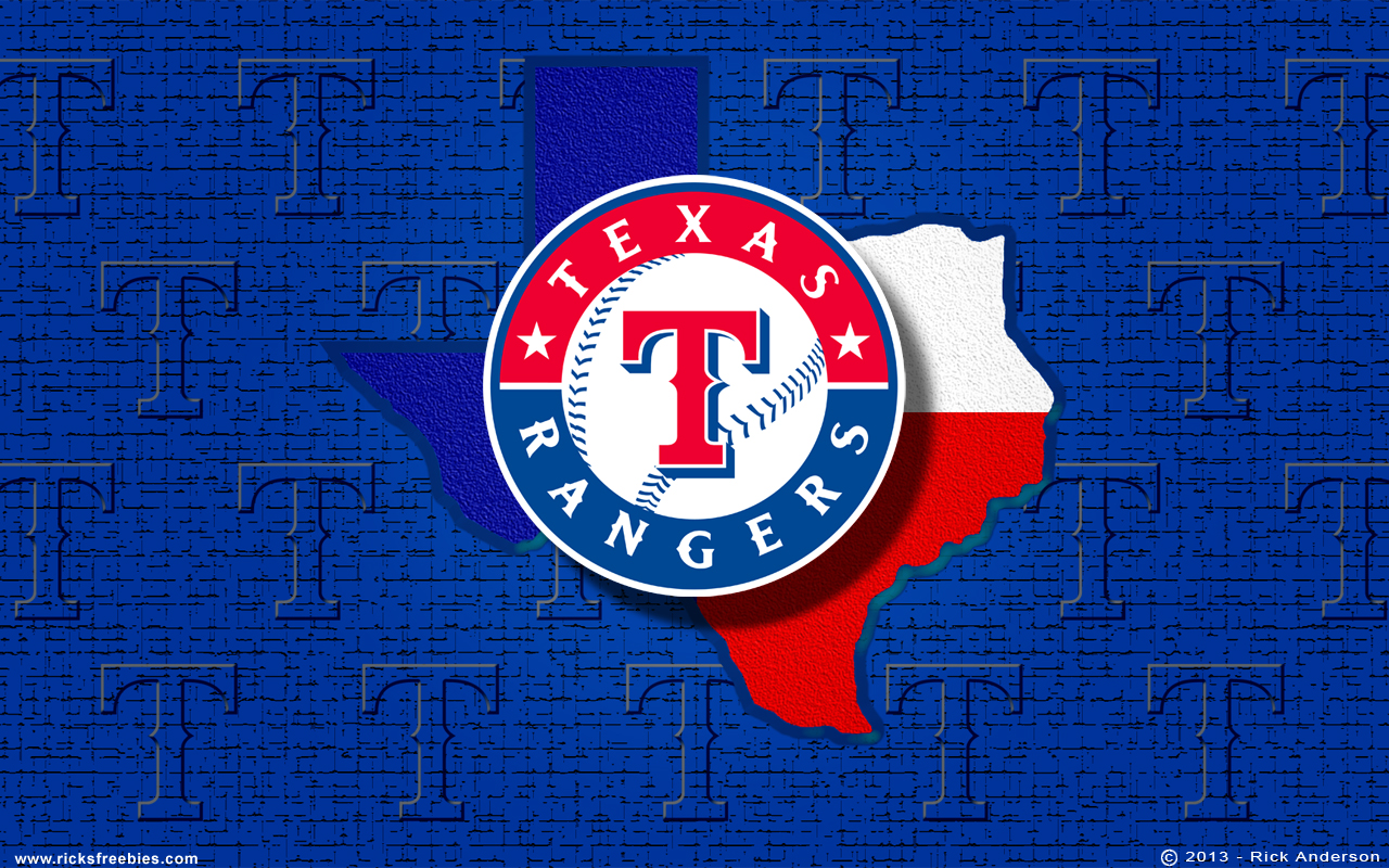 Description: A texas rangers logo on a blue background with a texas map and a texas rangers baseball ball on it.