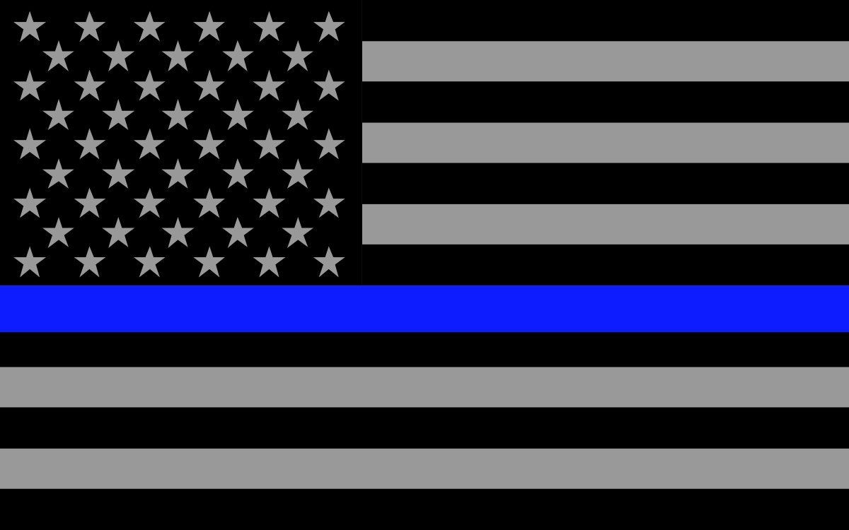 Description: A thin blue line american flag with stars on it and a thin blue line on the back of the flag.