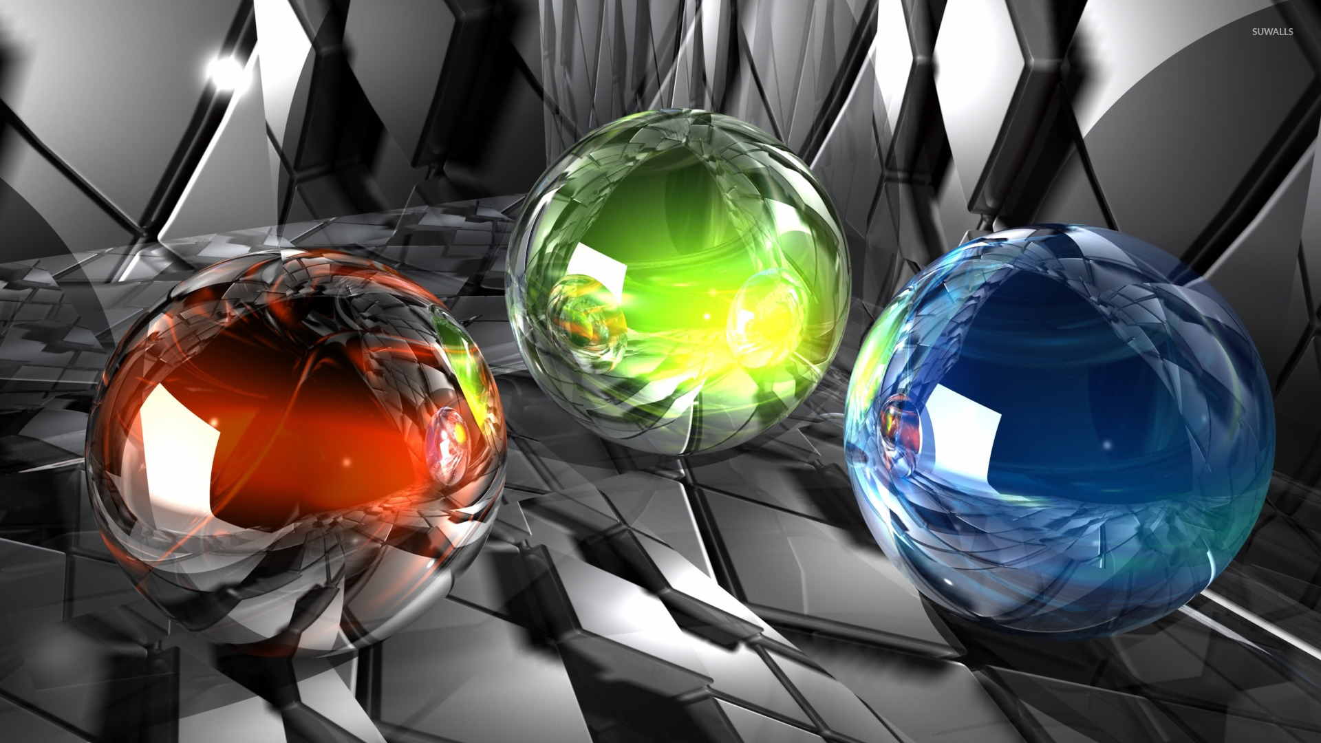 Description: Three balls are shown in a 3d image with a black background and a white background with a red.