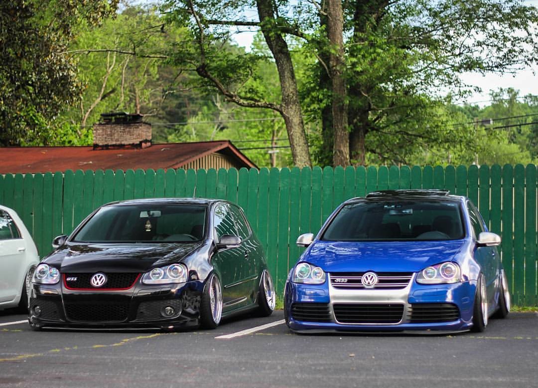 Description: Three cars parked in a parking lot next to a green fence and a green fence with a green fence.