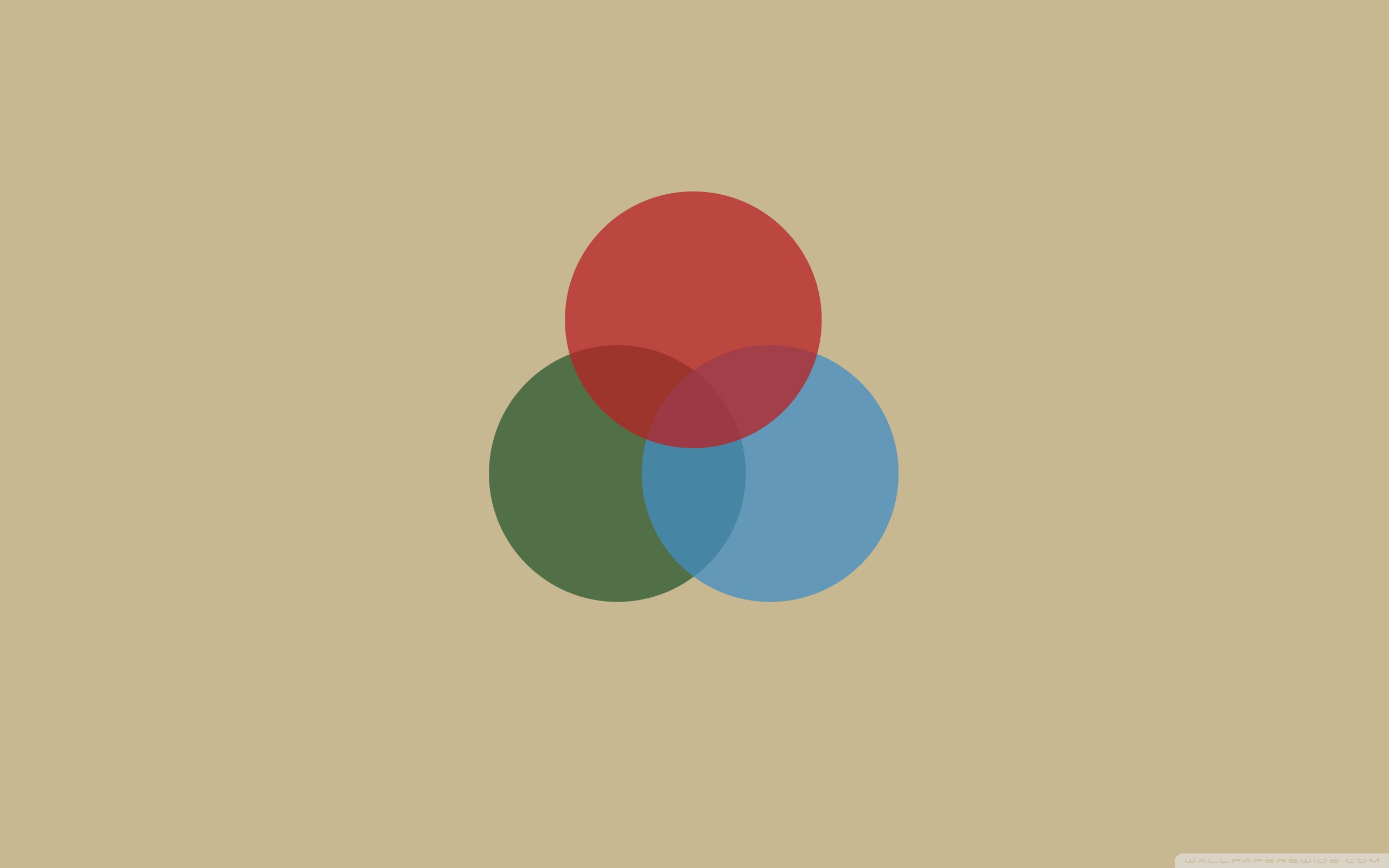 Description: A picture of a three circles on a beige background with a red and green circle on the bottom of the image.