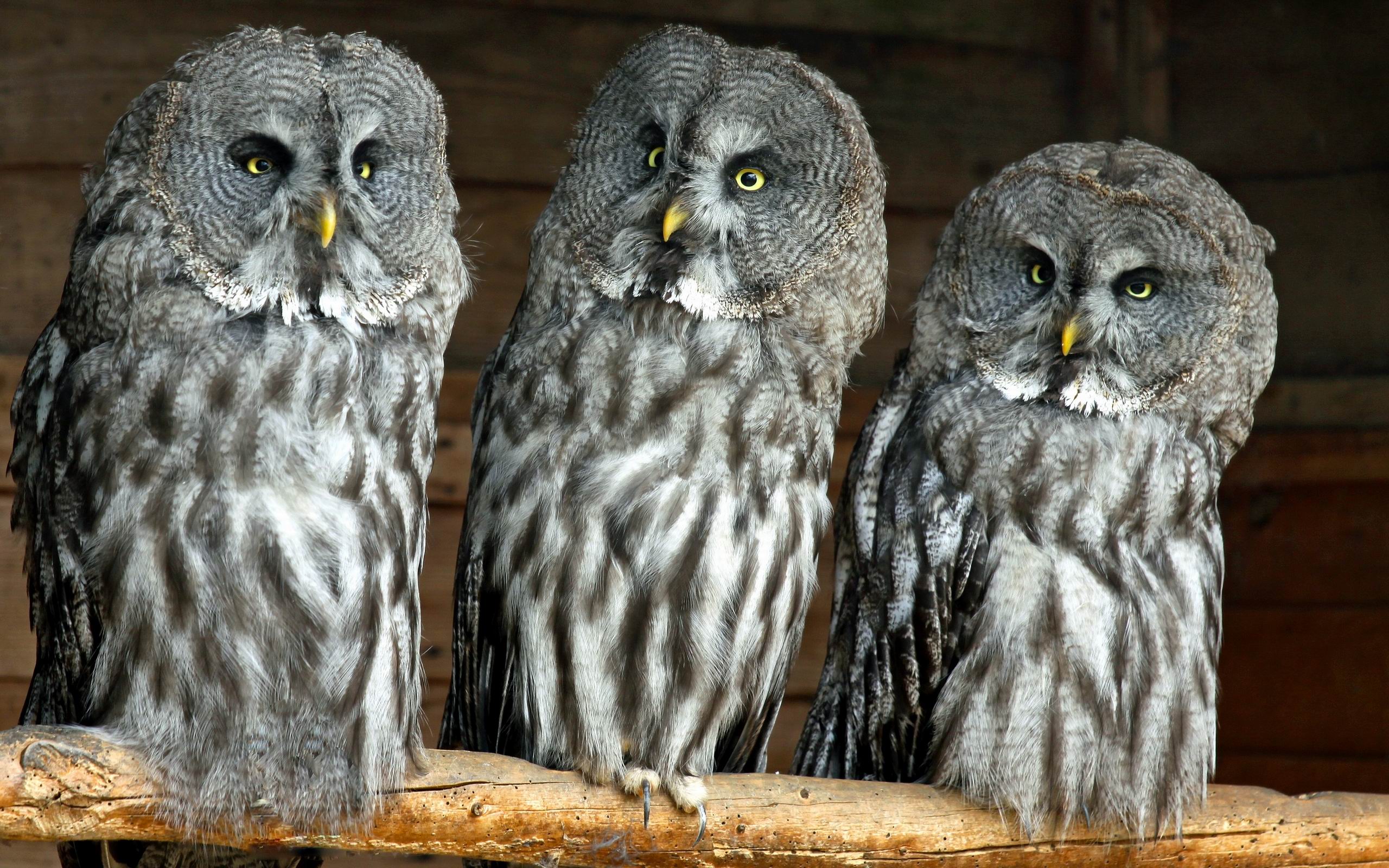 Three owls branch yellow eyes #2 - free wallpaper for desktop | 5desktop.com
