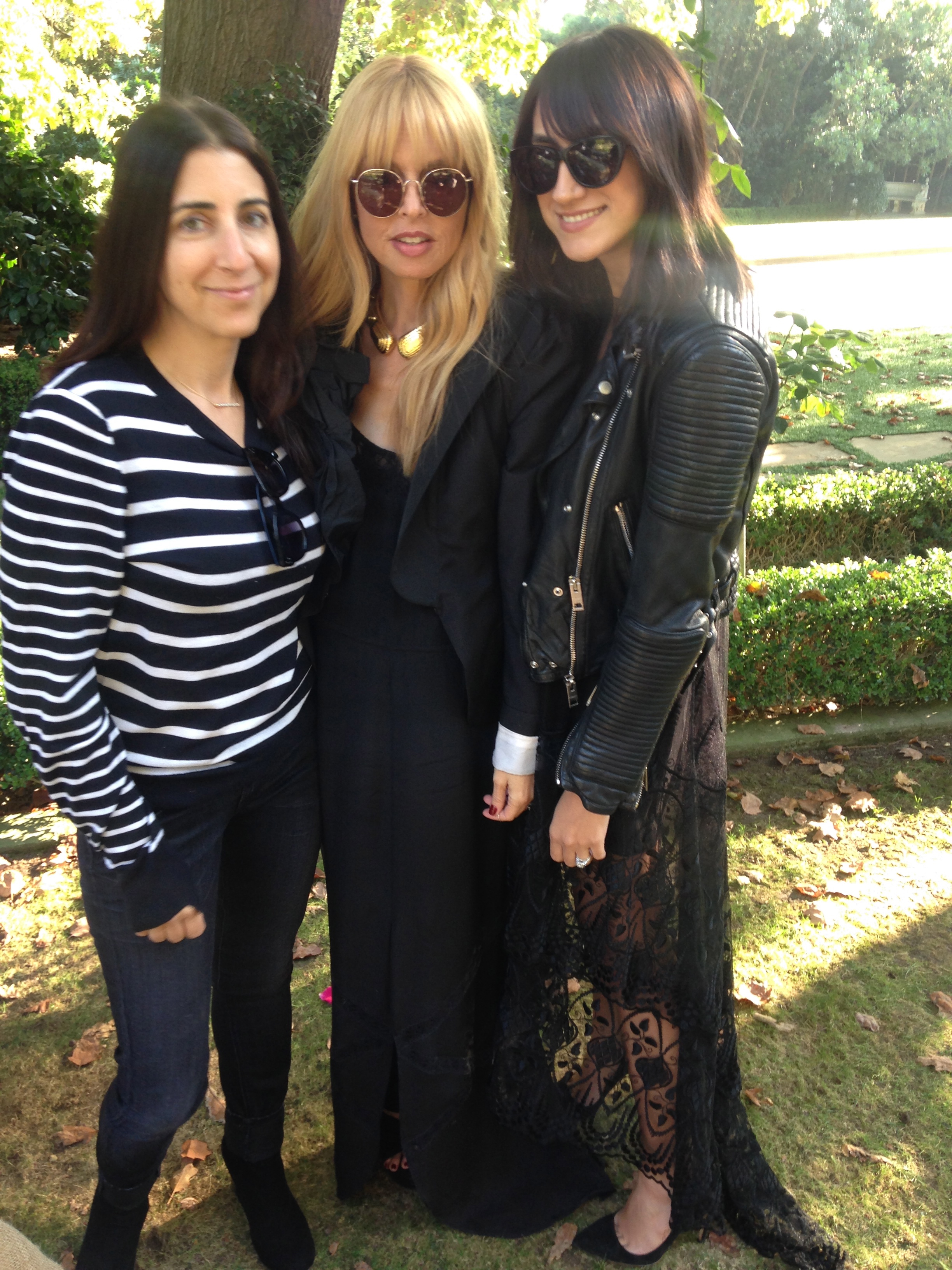 Description: Three women standing next to each other in a park area with trees in the background and grass in the foreground.