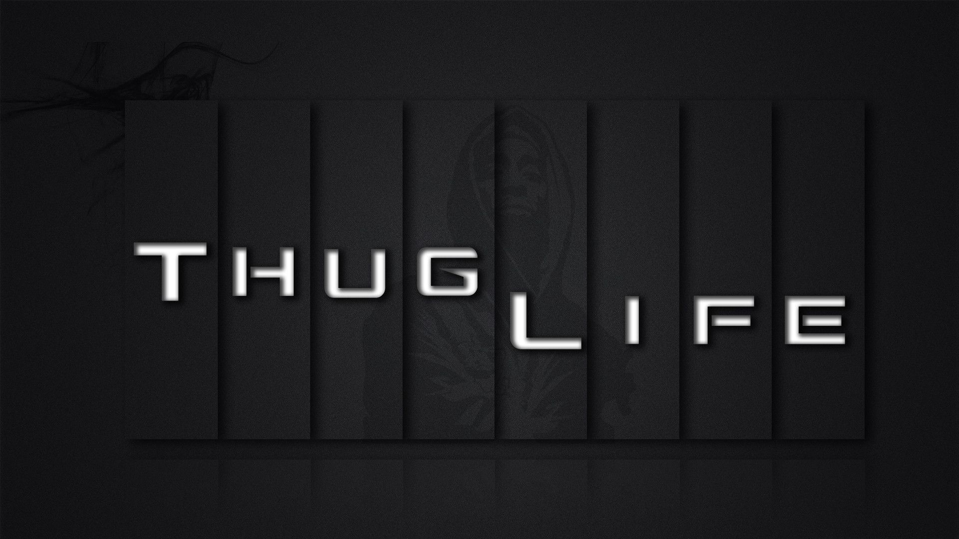 Description: A black and white photo with the words thug life in white letters on a black background with bars.