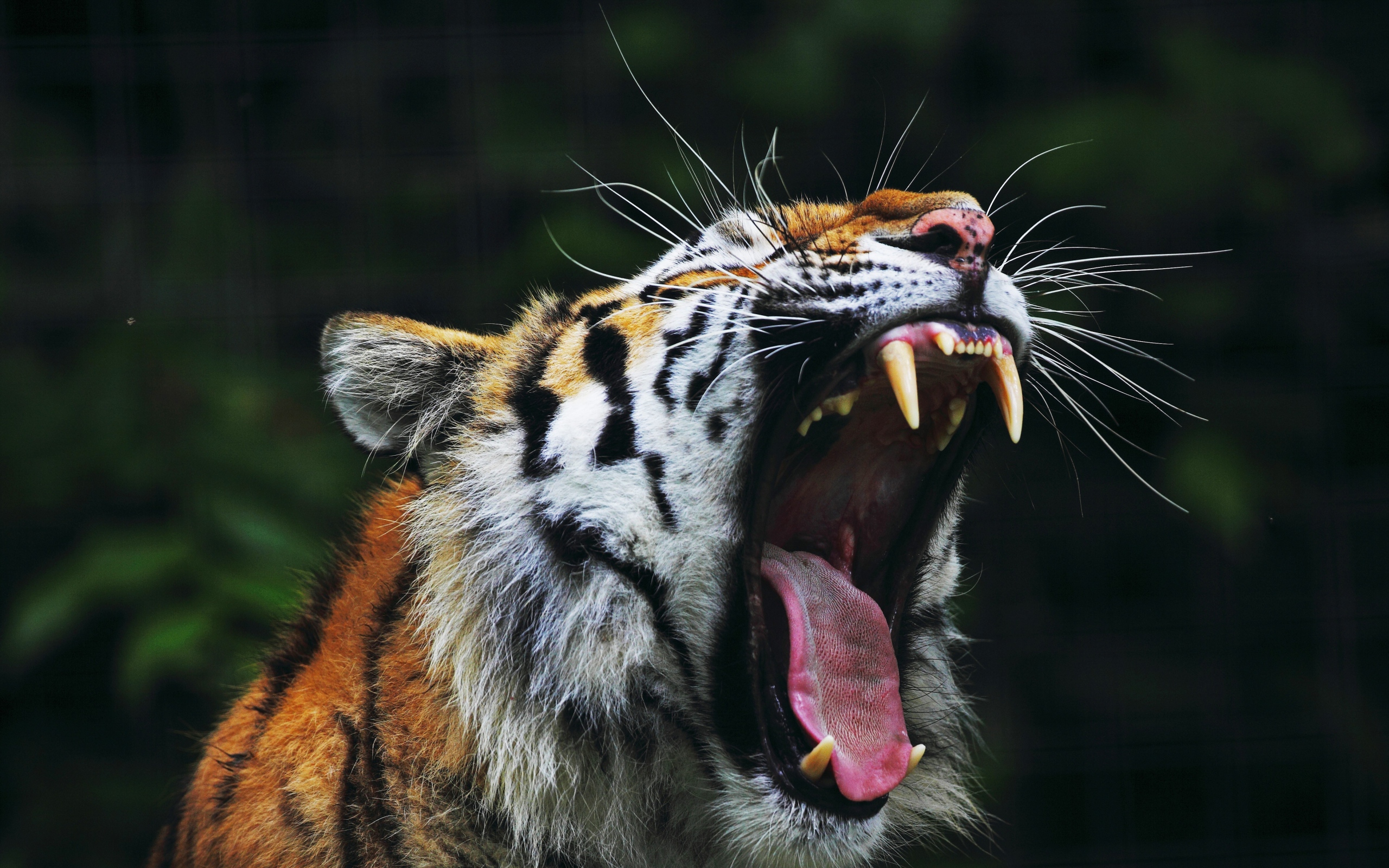 Description: A tiger with its mouth open and it's mouth wide open with its mouth wide open and it's teeth wide open.