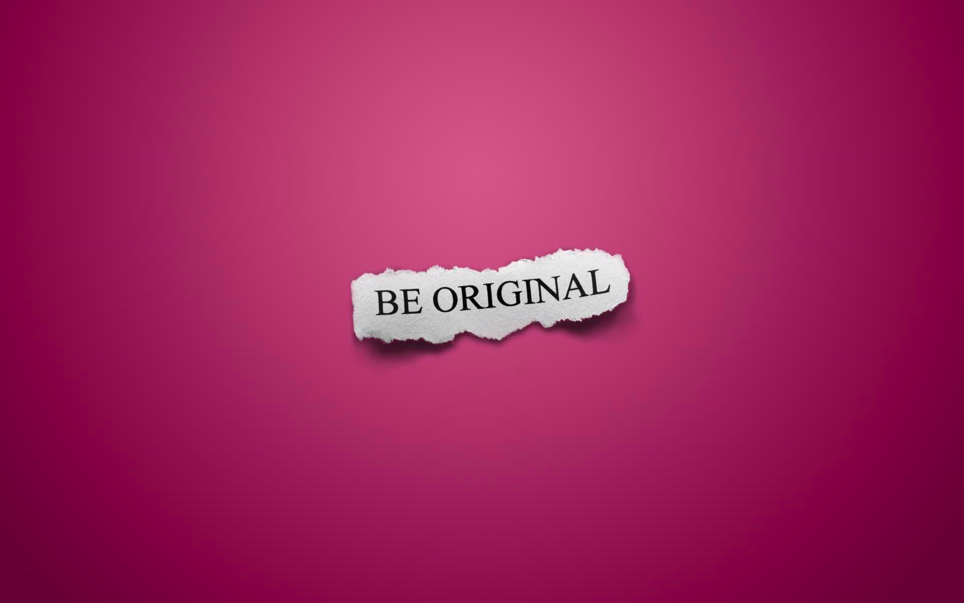 Description: A torn piece of paper with the words be original on it against a pink background with a torn edge.