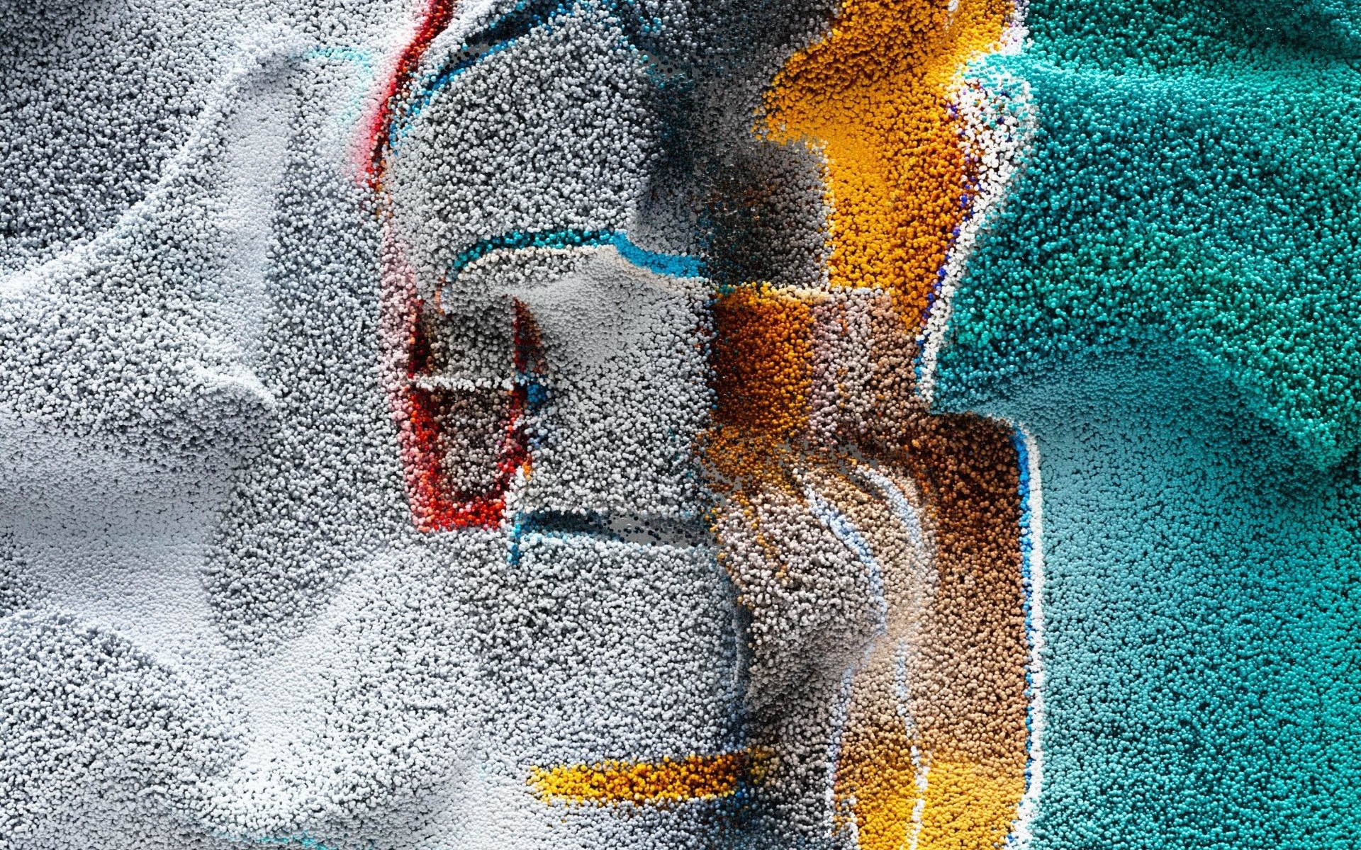 Description: A close up of a towel with a blue and yellow design on it and a red and yellow design on the bottom.
