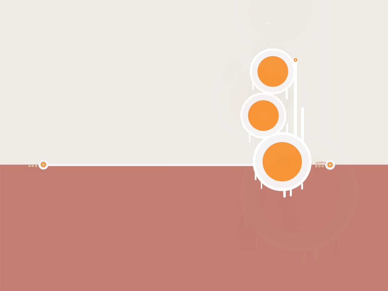 Description: A traffic light with two orange dots on it's side and a white background with a red stripe.