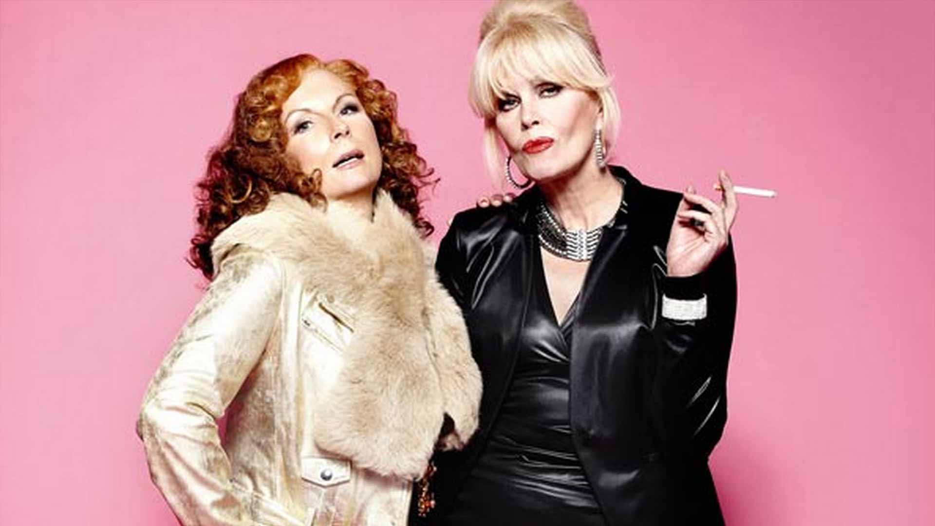 Description: Two women in leather outfits smoking a cigarette together in front of a pink background with a pink wall behind them.