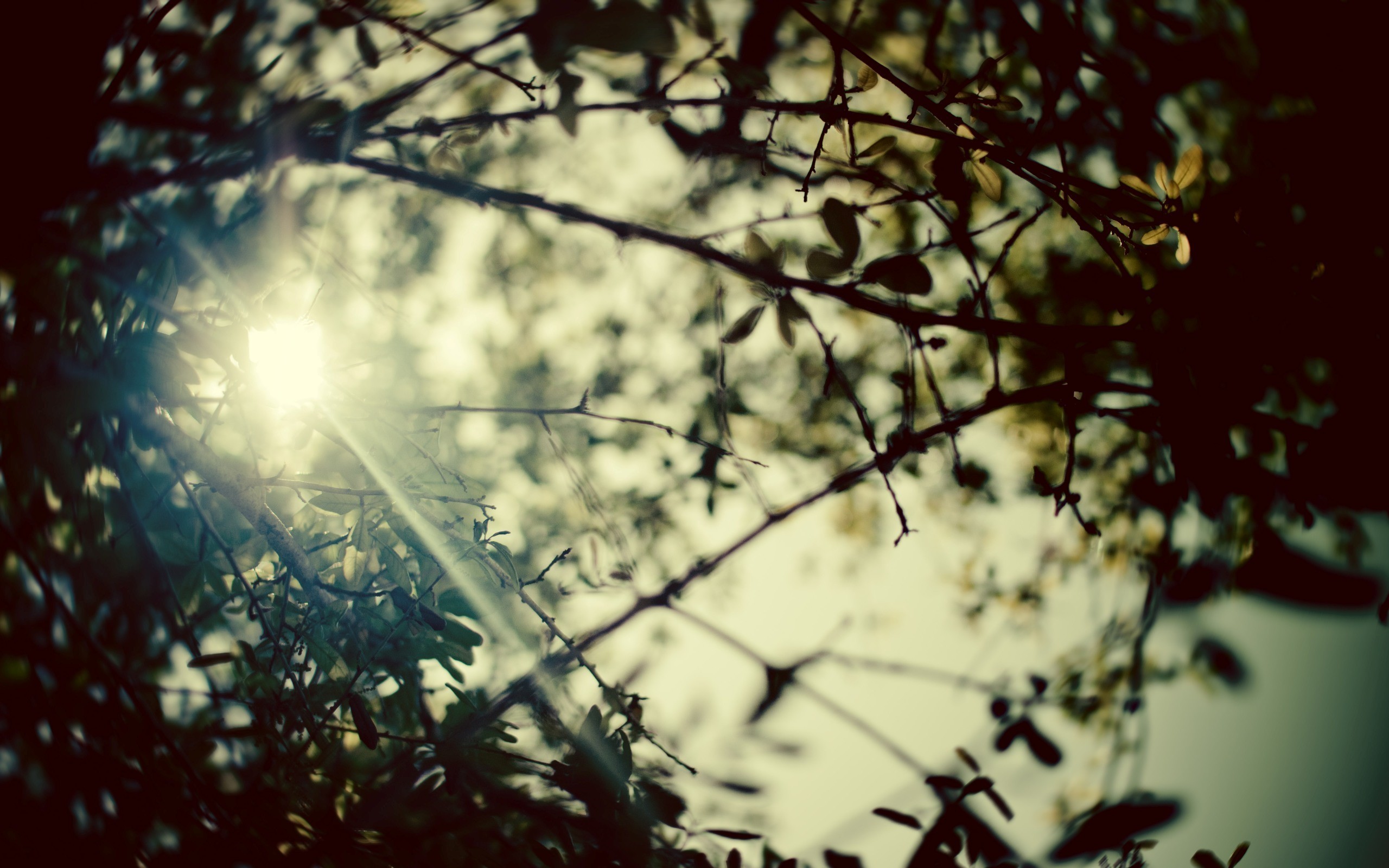 Description: A tree branch with the sun shining through the branches of it's branches.