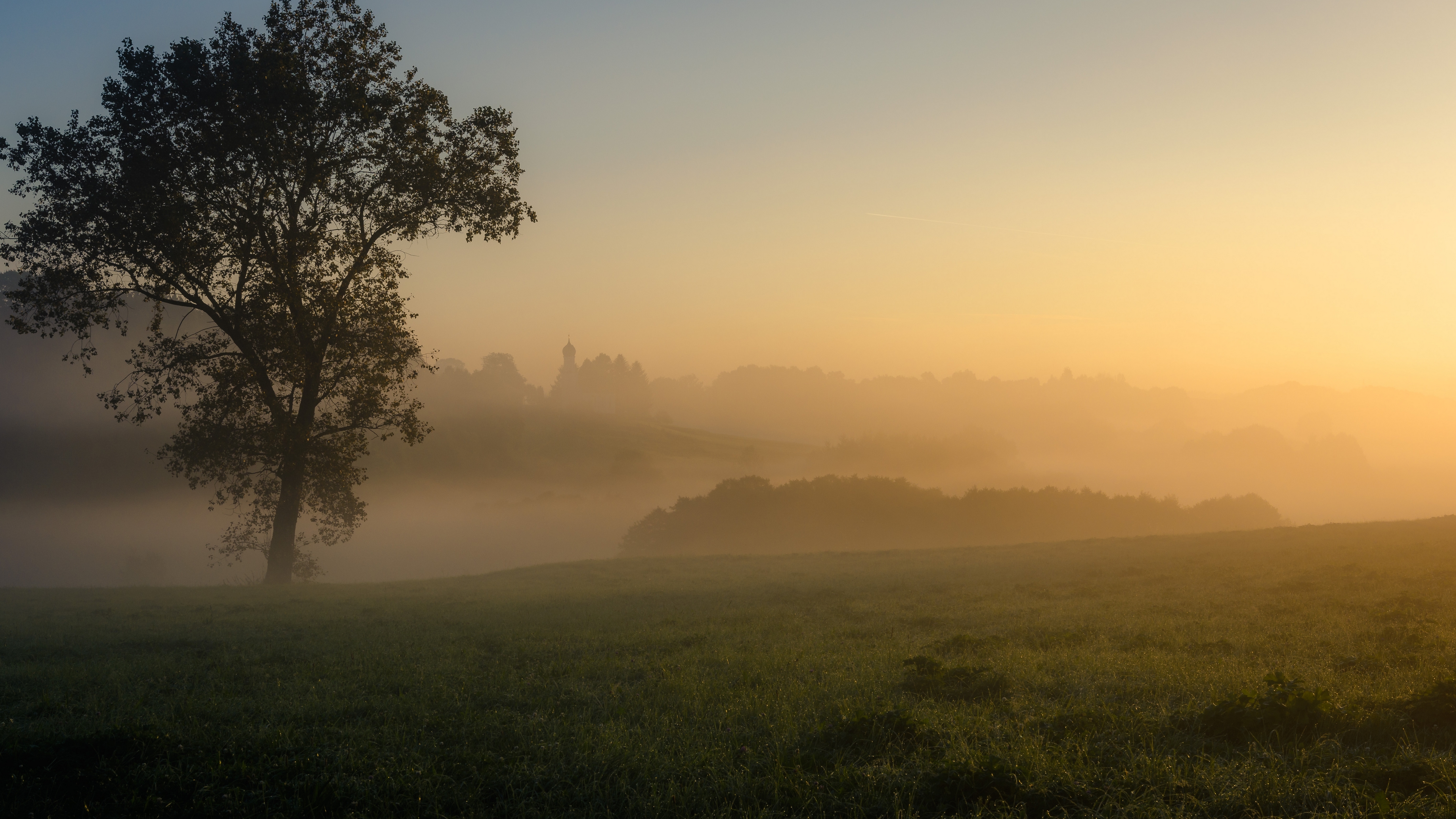 Tree foggy sunset matte bernd free wallpaper for desktop - medium preview image