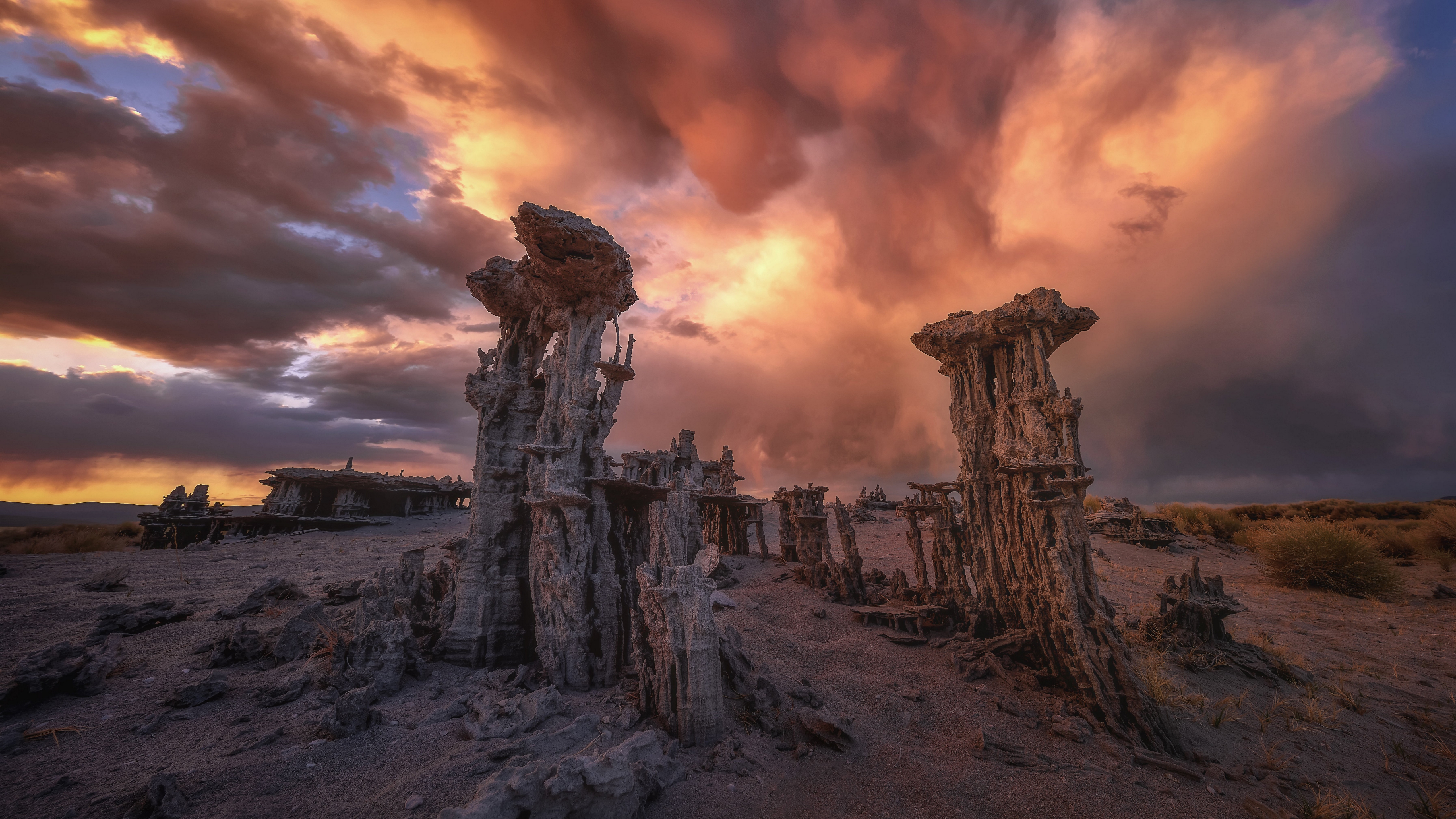 Description: A group of trees that are in the dirt with a sky background and clouds in the background with a few clouds.