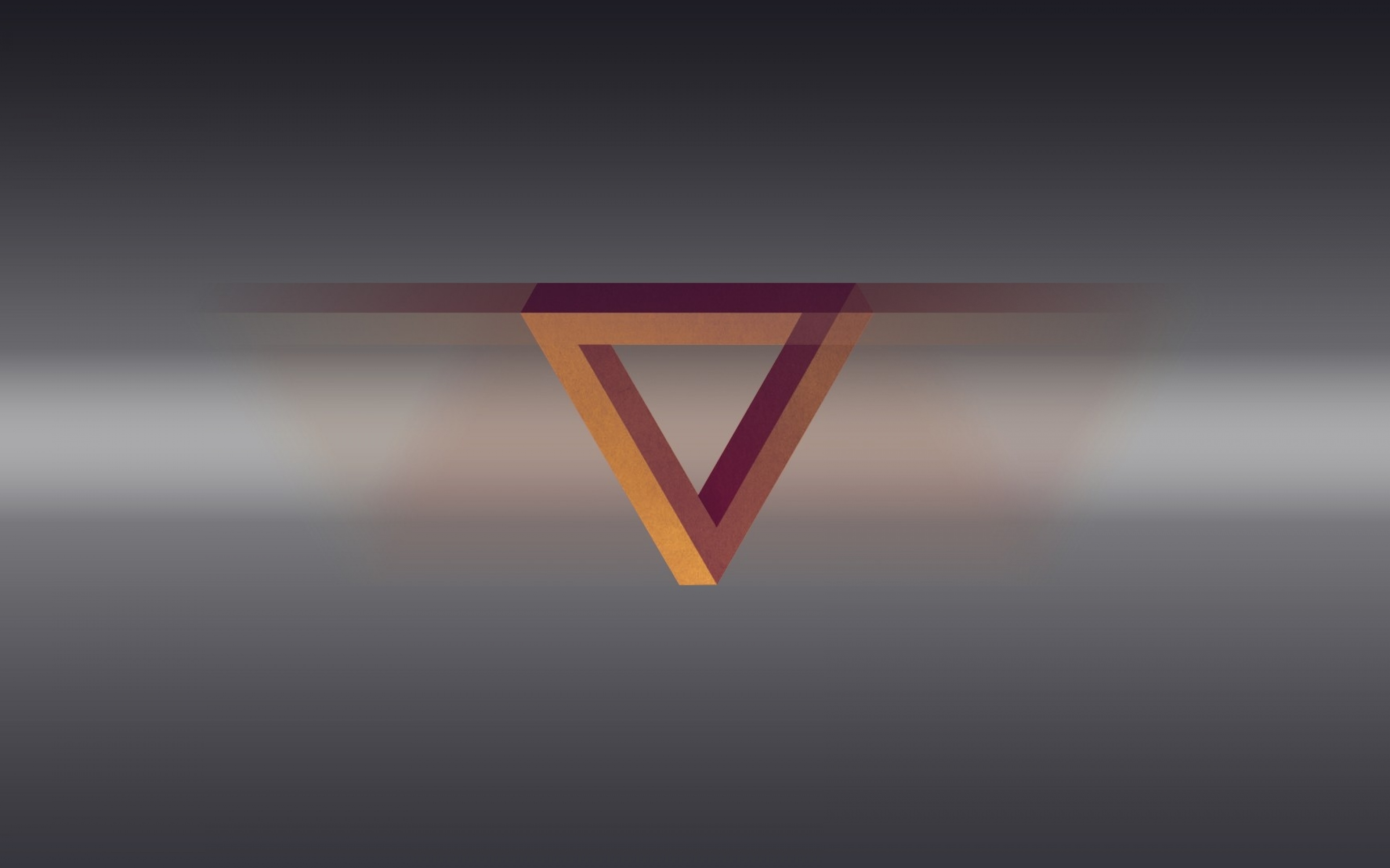 Description: A triangle with a long shadow on a gray background with a light reflection on the bottom of it and a dark background with a light reflection on the bottom.