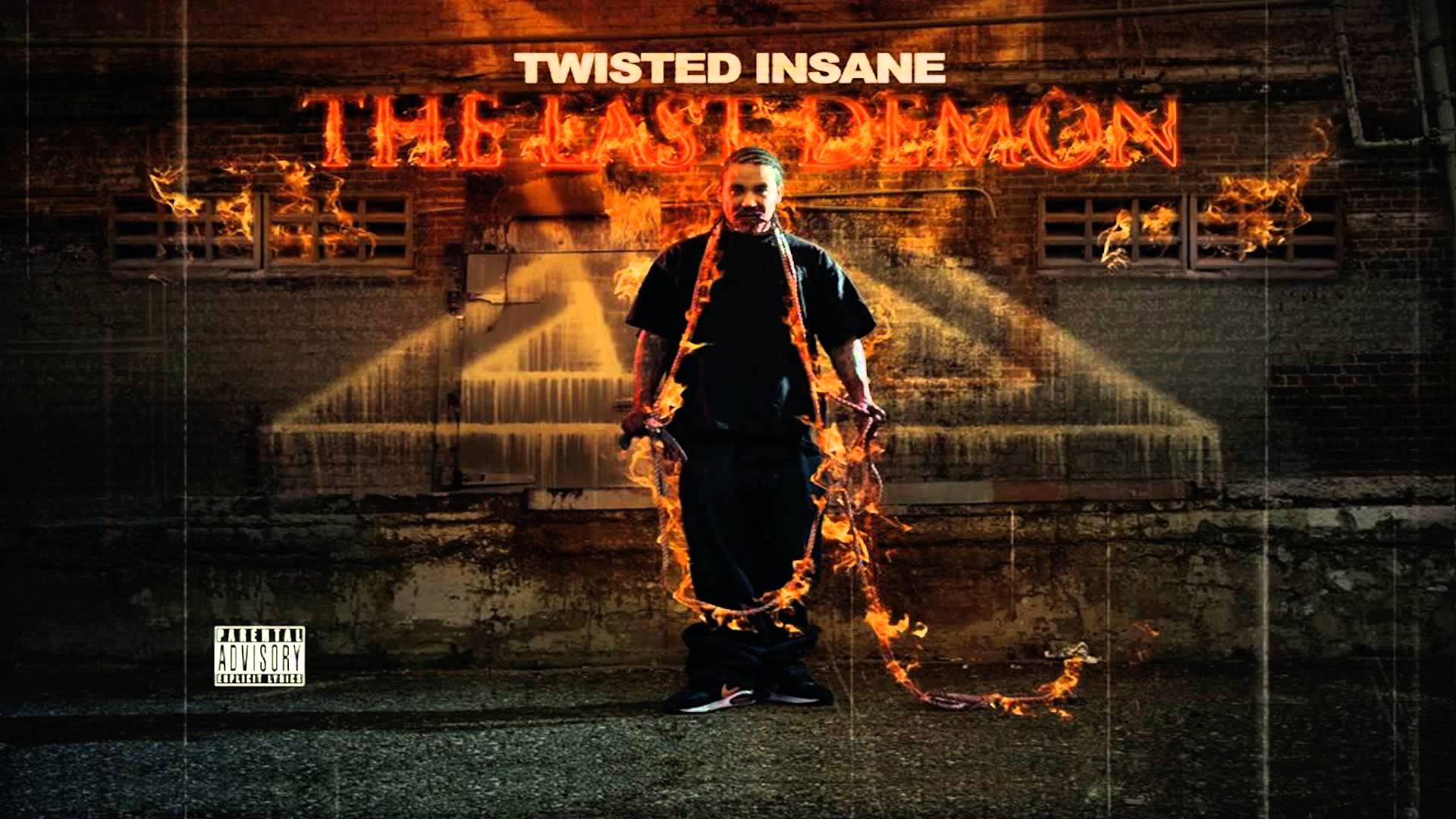 Description: A man standing in front of a building with a chain around his neck and a sign that says twisted insane the last demon.