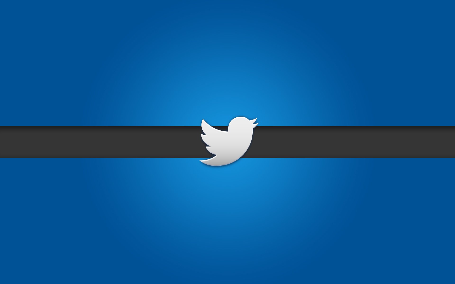 Description: A twitter logo is shown on a blue background with a black stripe in the middle of the image and a white bird on the side of the image.