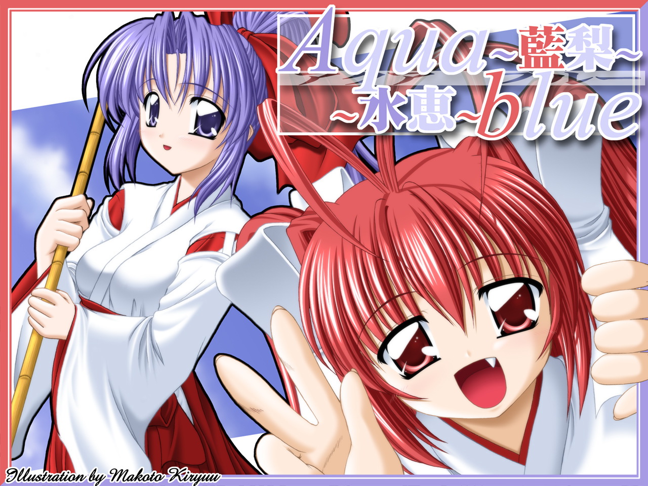 Description: Two anime girls with red hair and blue eyes are posing for a picture together with the caption aqua - blue.