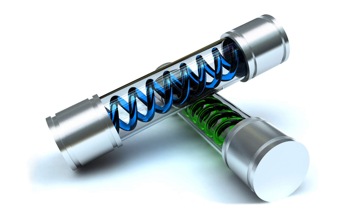 Description: Two batteries with blue and green wires on them are shown in this image.