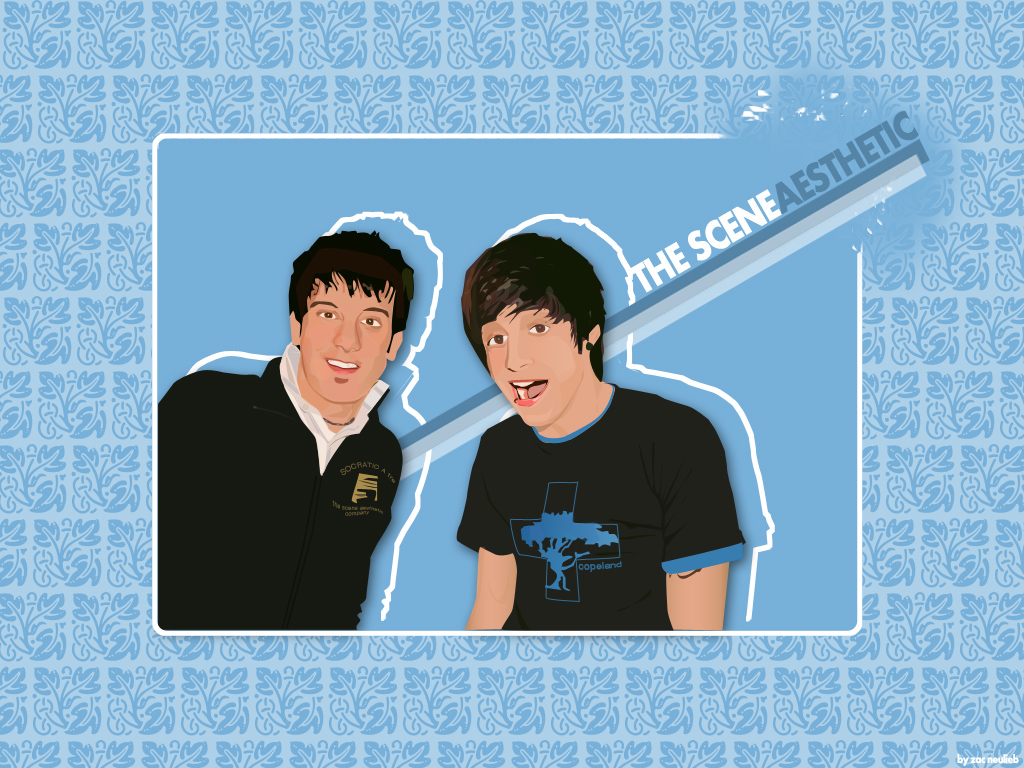 Description: Two men are standing next to each other in front of a blue background with a blue and white design.