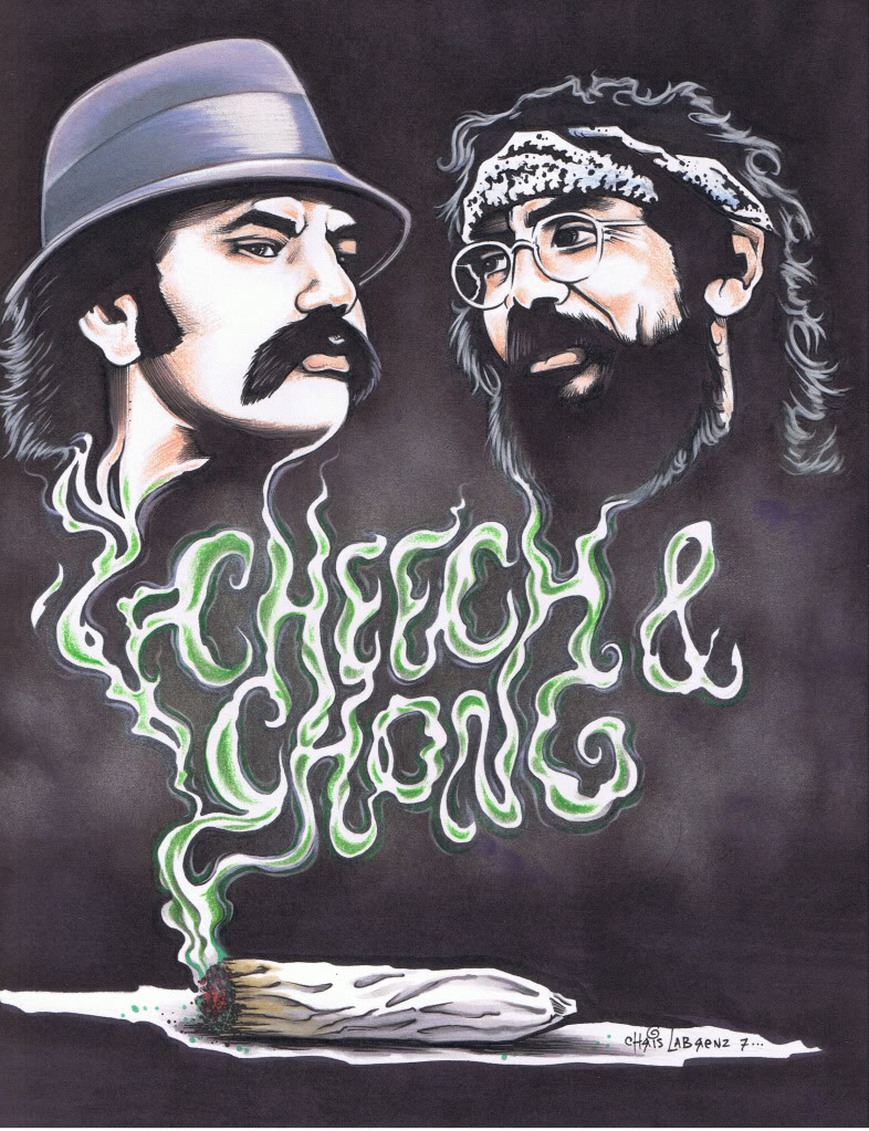 Description: A drawing of two men with a cigarette in their hand and the words.