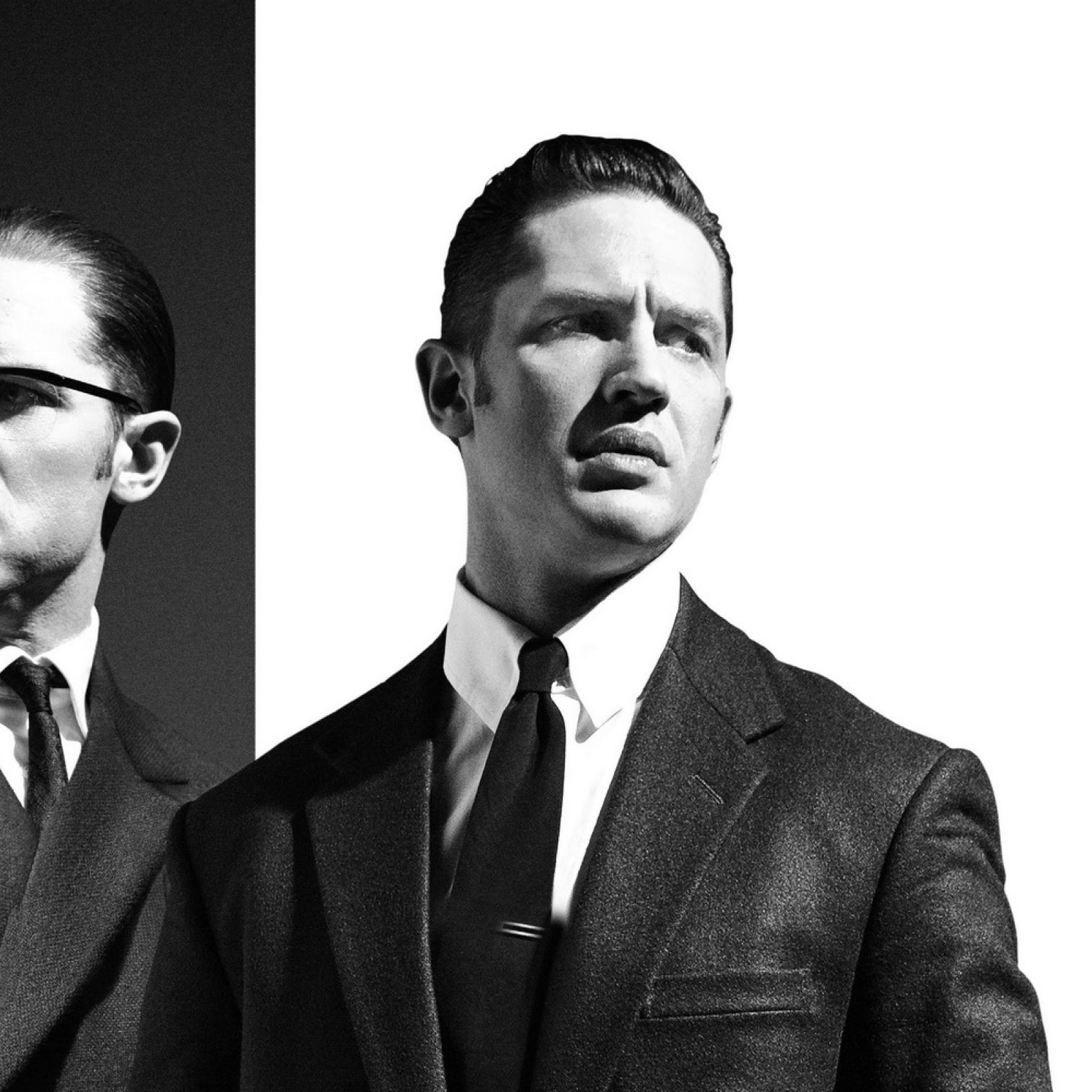 Description: Two men in suits and ties are standing side by side in black and white photos.