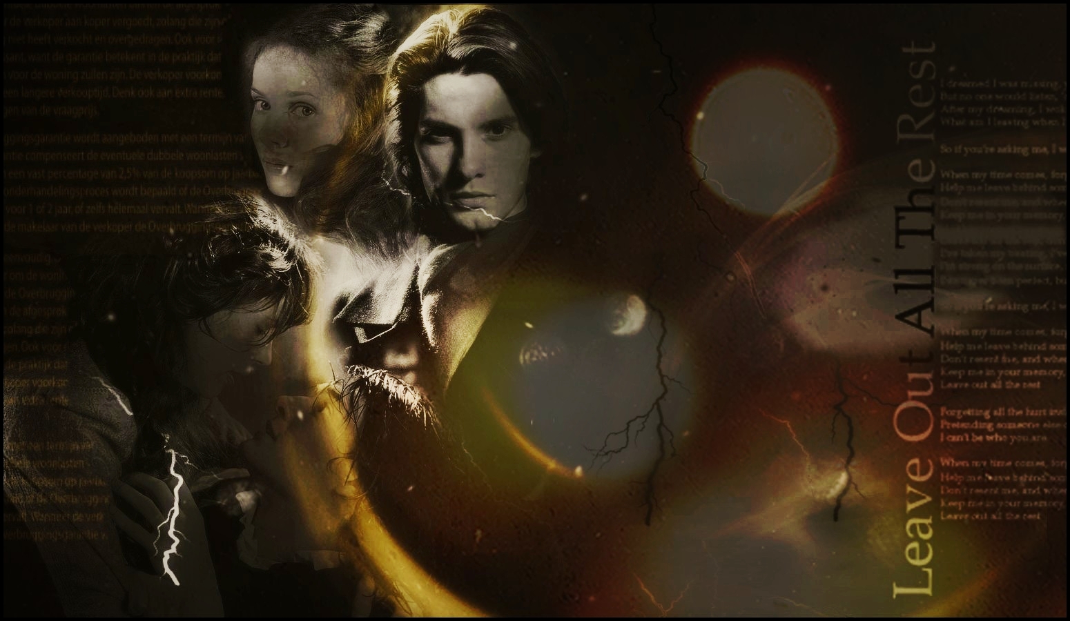 Description: A poster with a picture of two men and a woman in the background with a caption that reads.