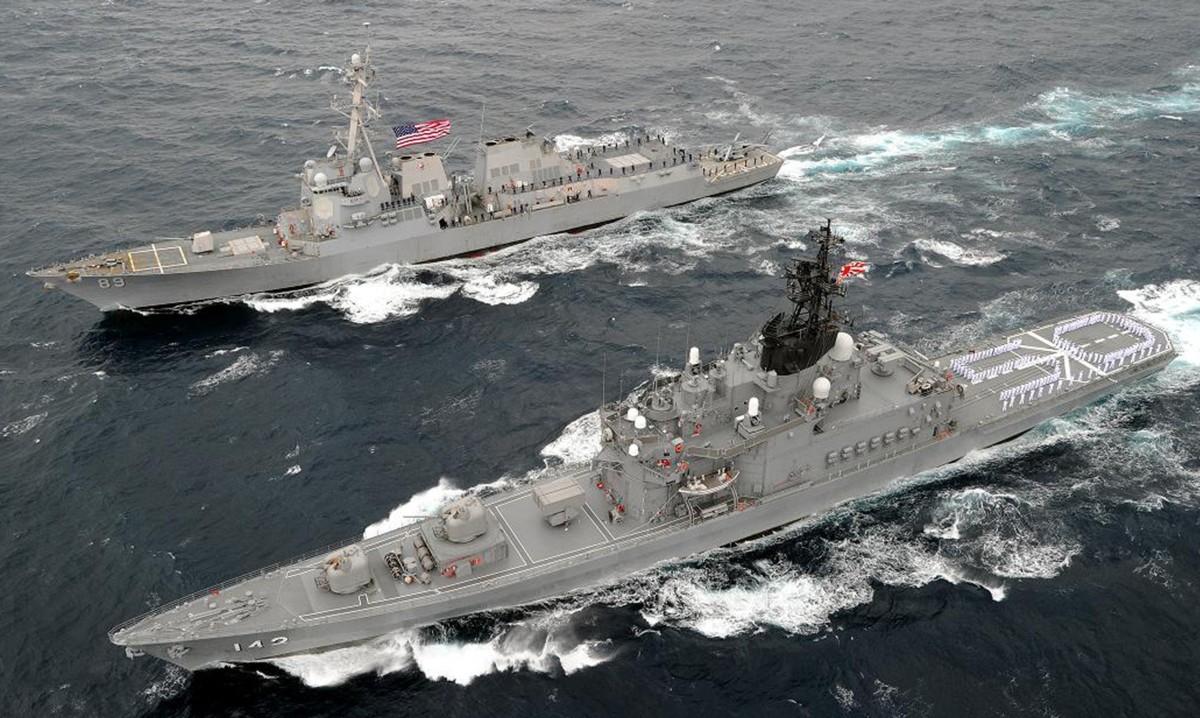 Description: Two ships in the ocean with one larger one in the water and one smaller one in the water with a flag on it.