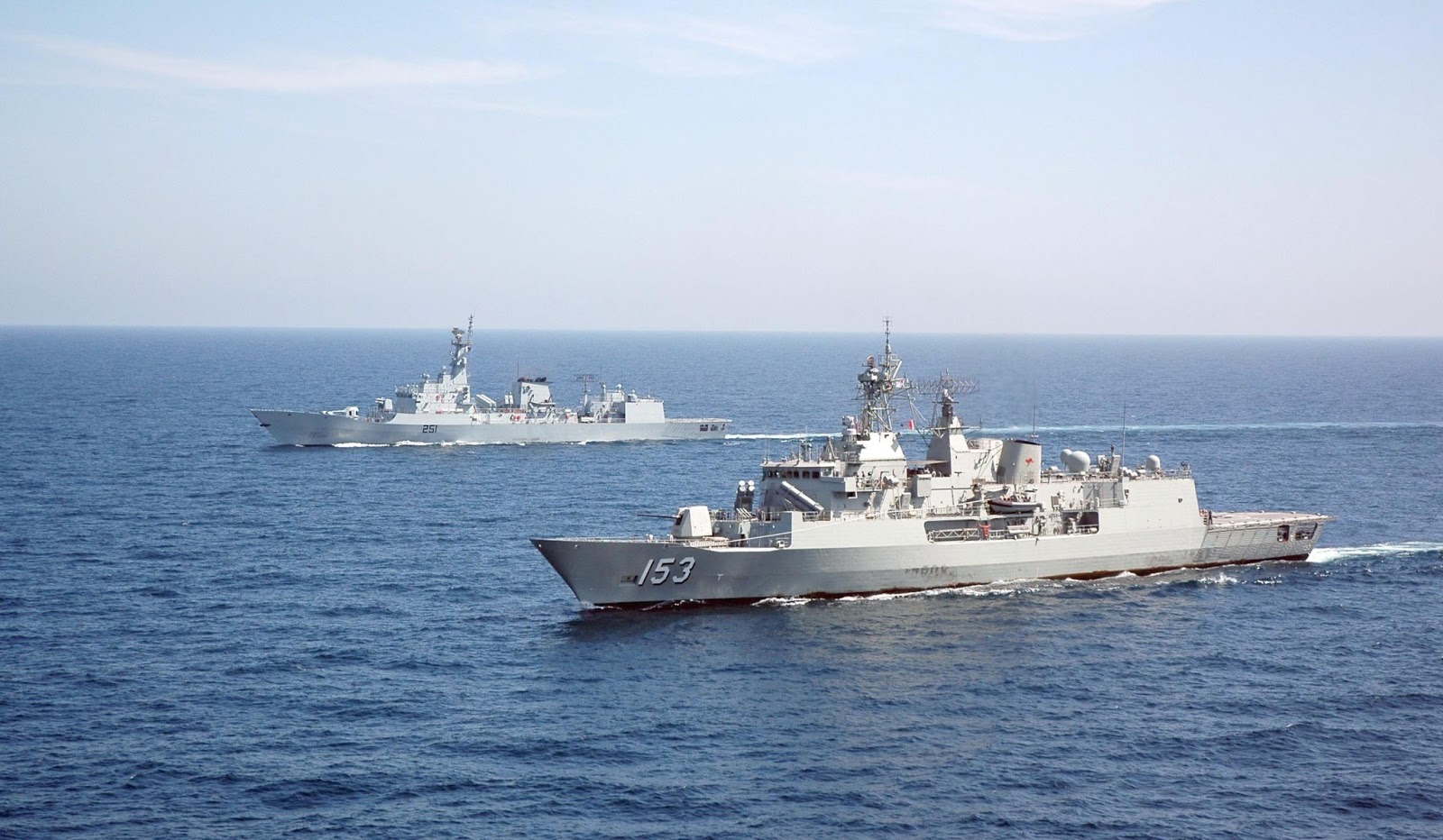 Description: Two ships in the ocean with one larger one in the water and one smaller one in the water with a smaller one.