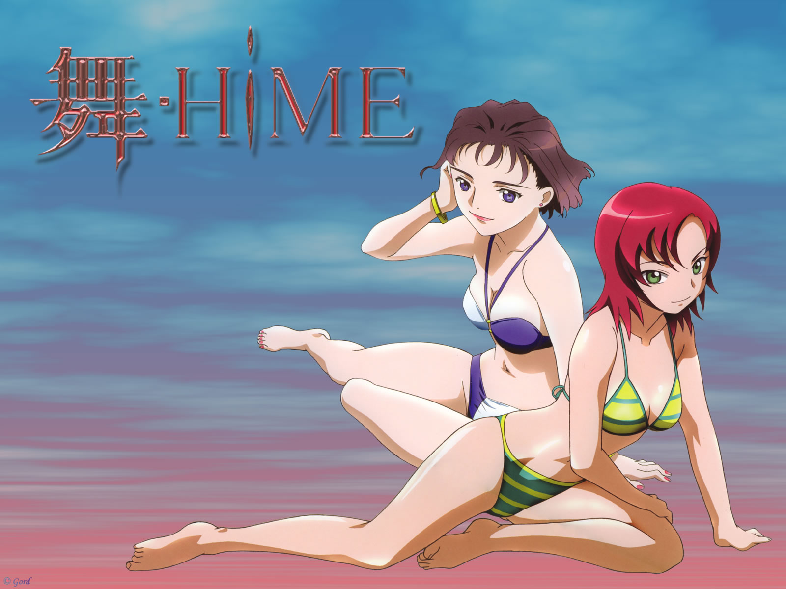 Description: Two women in bikinis sitting on the ground with the words time written in chinese on the background of the image.