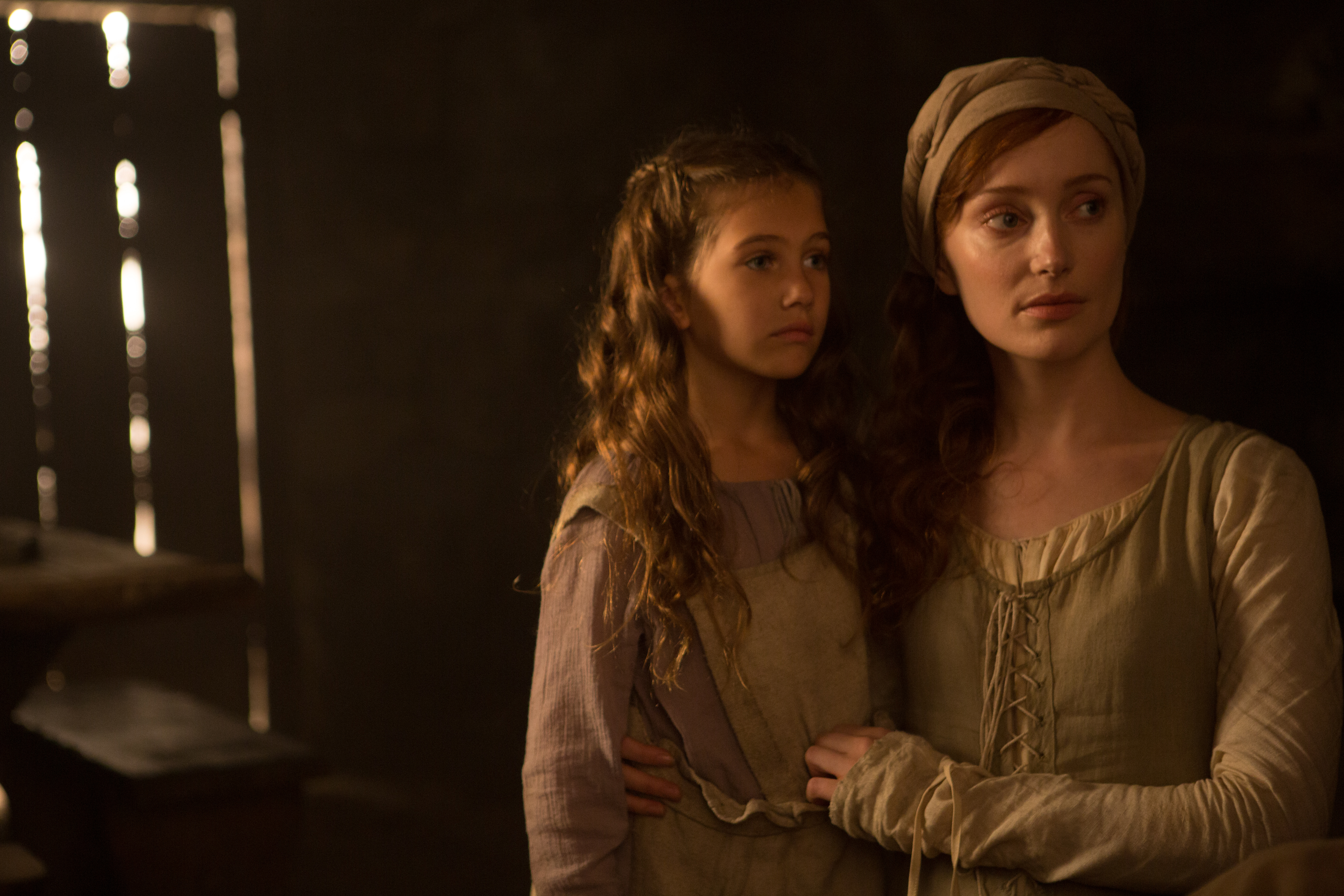 Description: Two women standing next to each other in a room with a light on the wall behind them and a chair in the background.