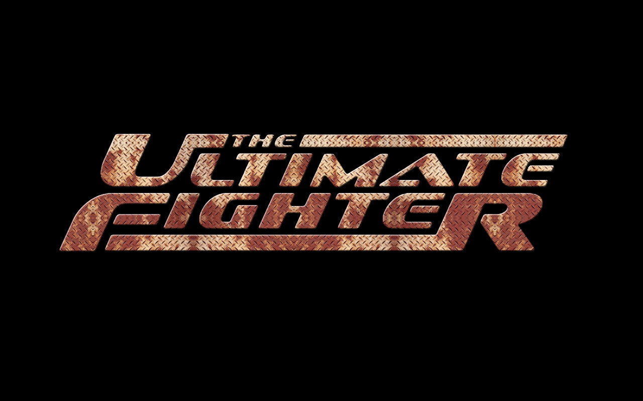 Description: The ultimate fighter logo on a black background with a red and yellow stripe that reads the ultimate fighter on it.