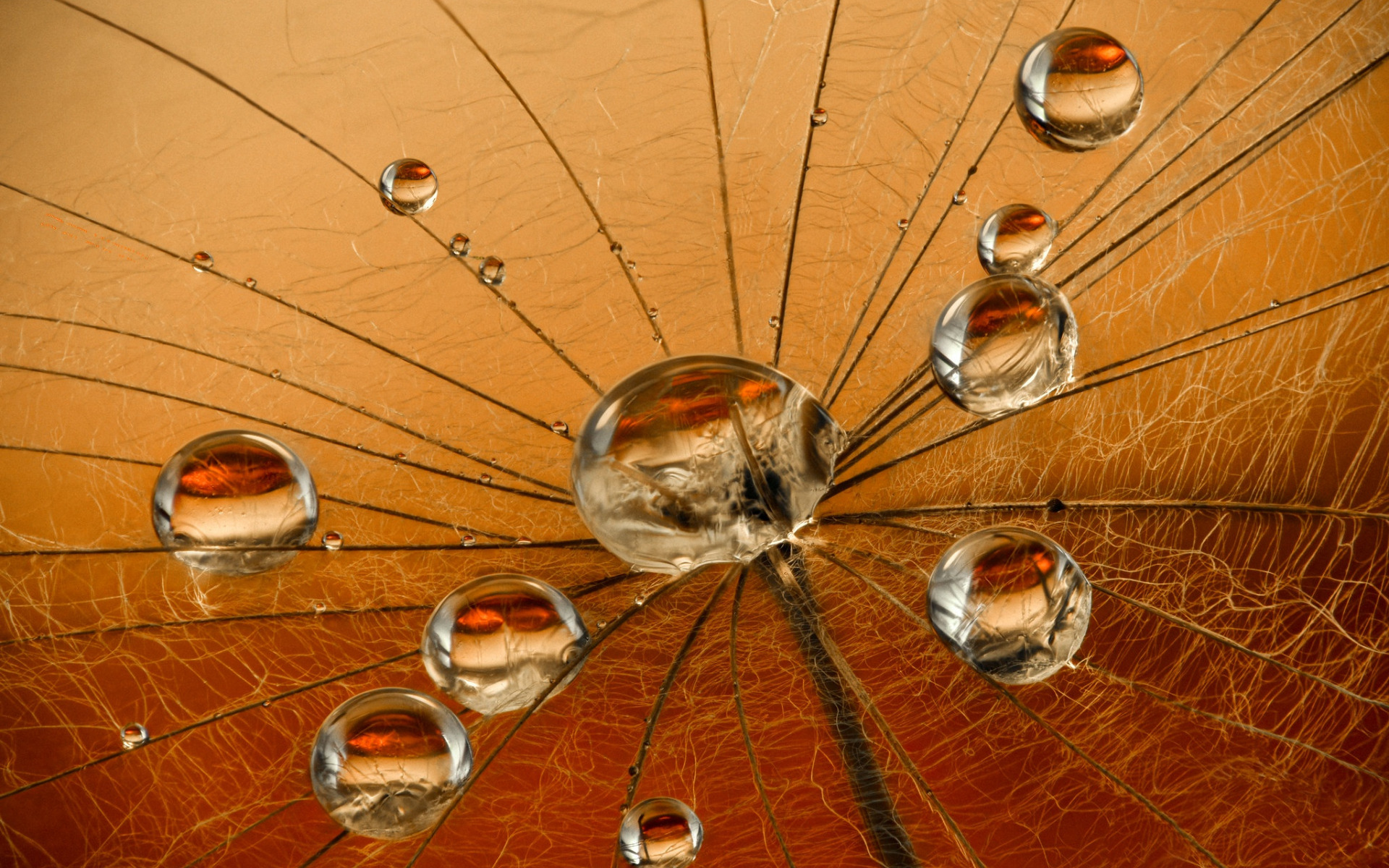 Description: A umbrella with many drops of water on it's side and a brown background with a brown background.