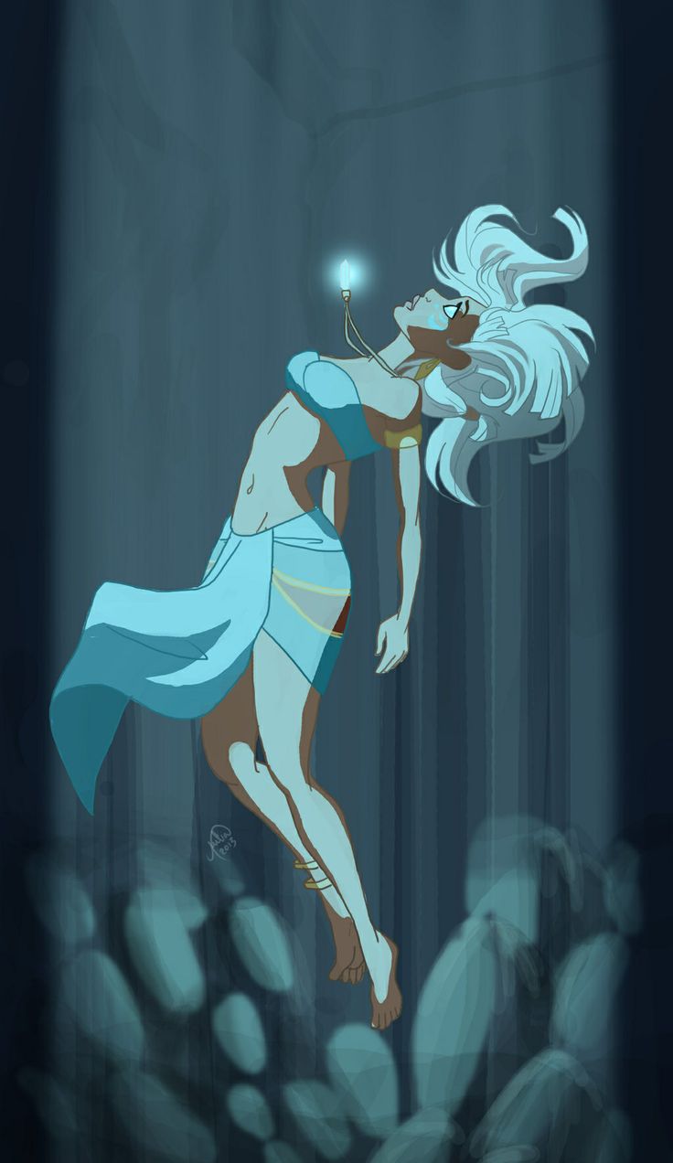 Description: A cartoon of a woman in a blue dress and a man in a white suit and a blue cape.