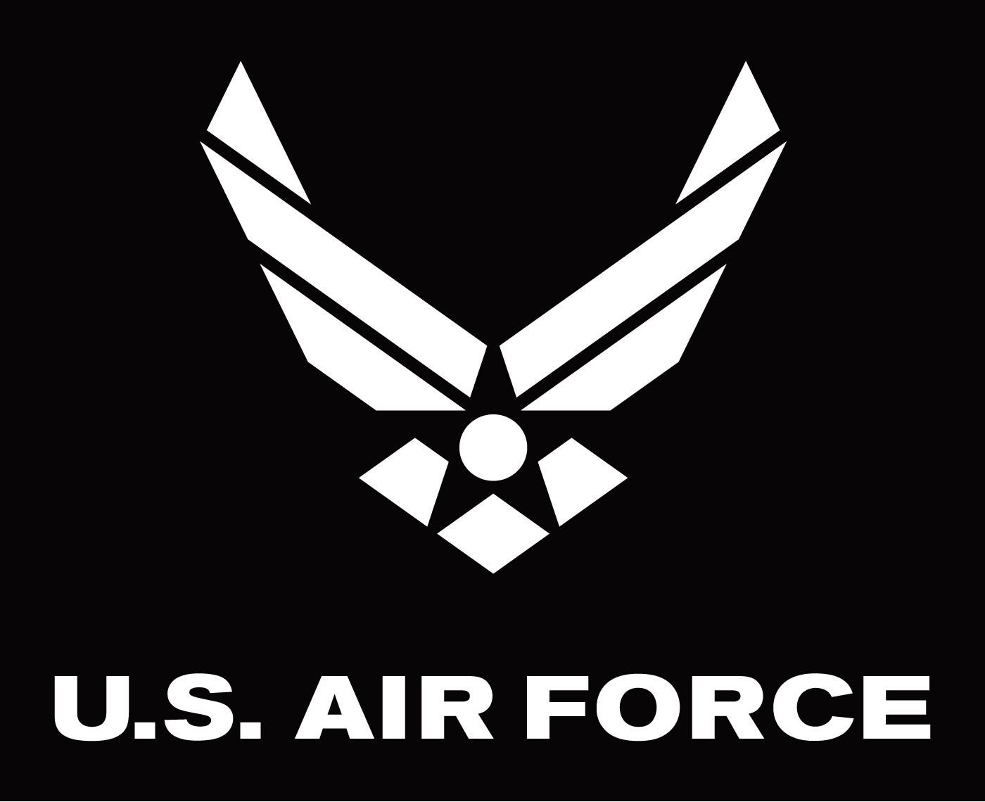 Description: A u s air force logo on a black background with the words u s air force below it and a white eagle.