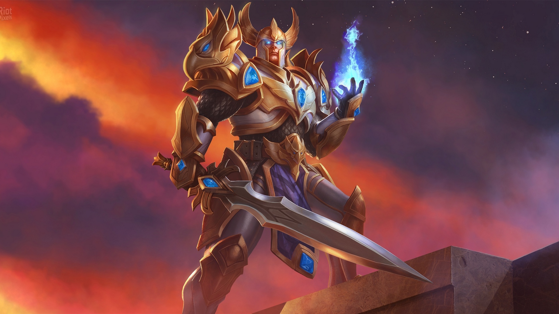 Description: A character from a video game holding a sword and a sword blade in his hand with a sky background.