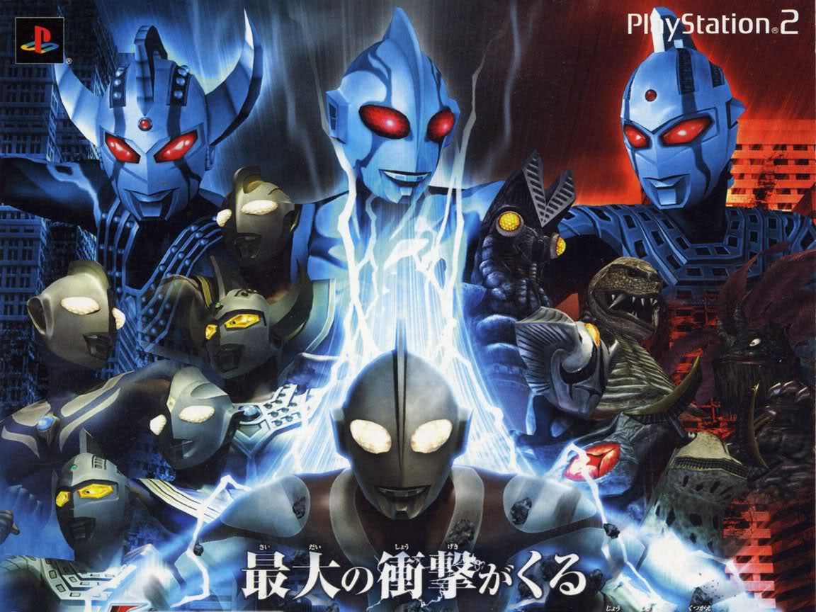 Description: A video game cover with a group of characters in front of a city background with a lightning effect in the middle.