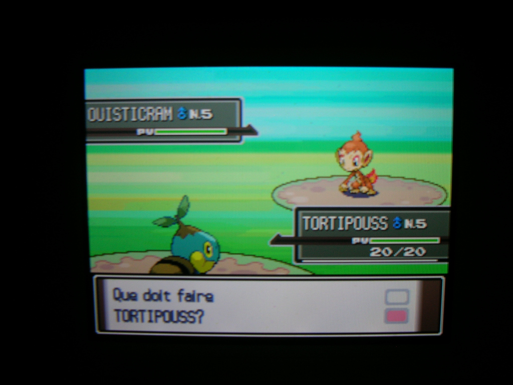 Description: A video game screen showing a person playing a game on a television screen with a question mark on it.