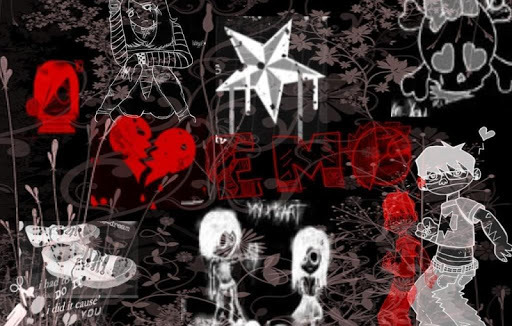 Description: A picture of a bunch of different things on a wall with the words bleeding on it and a picture of a skeleton.