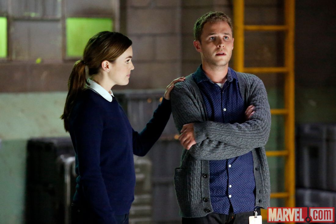 Description: A man and a woman standing next to each other in a warehouse area with a sign that says.