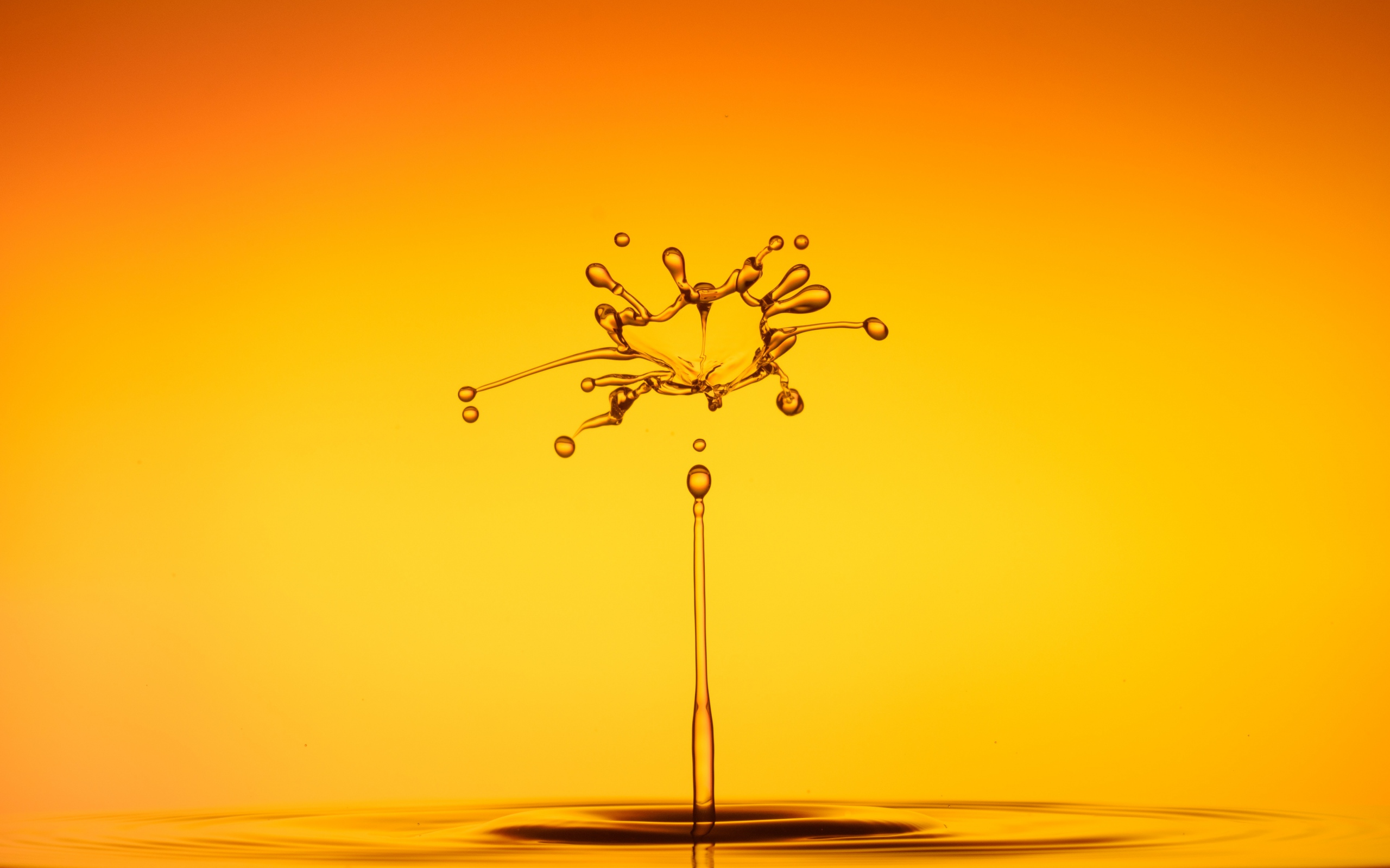 Description: A drop of water is falling into a puddle of water on a yellow background with a yellow background and a yellow background.