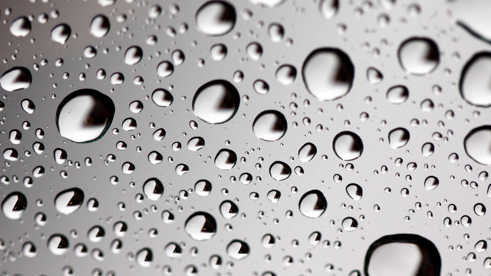 Description: A close up of water droplets on a glass surface with a black background and a white background with a few drops of water.