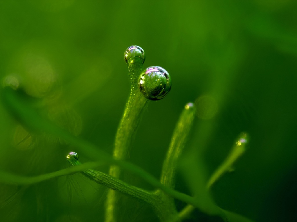 Description: A close up of a plant with water droplets on it's leaves and a blurry background of grass.
