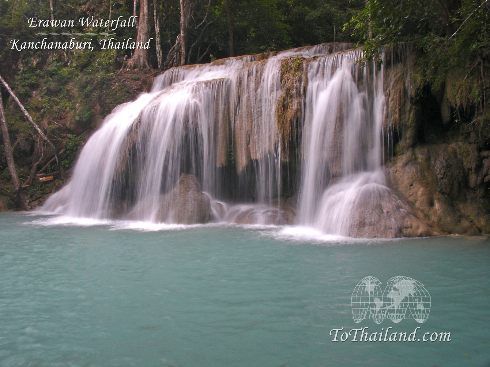 Description: A waterfall with water cascading over it and a sign that says.