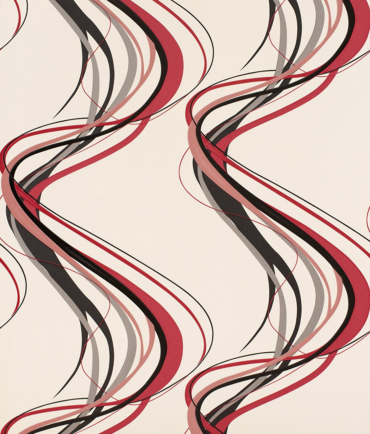 Description: A painting of a wavy pattern on a white background with red and black lines on it.