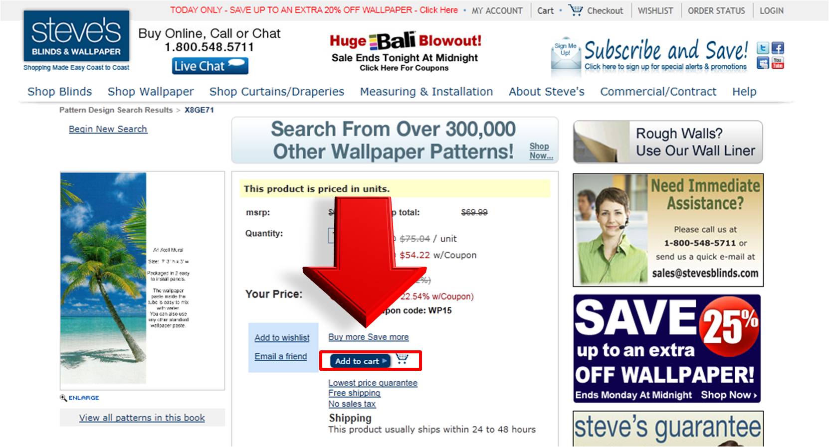 Description: A web page with a red arrow pointing to the right of the page and a palm tree in the middle.